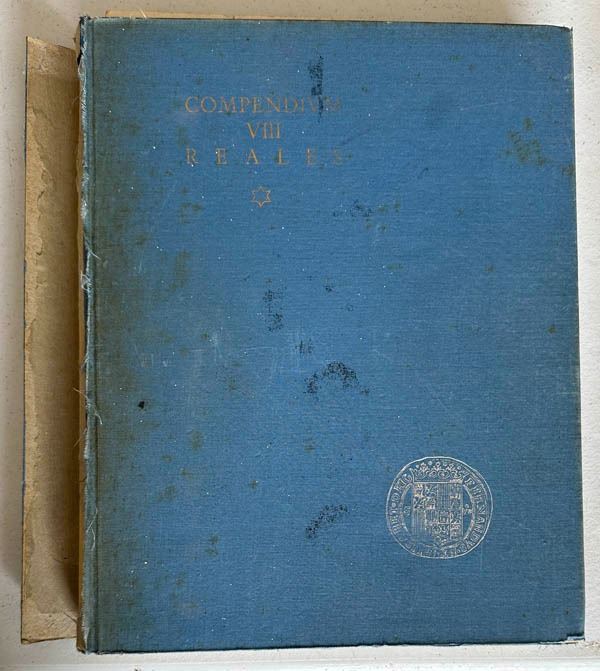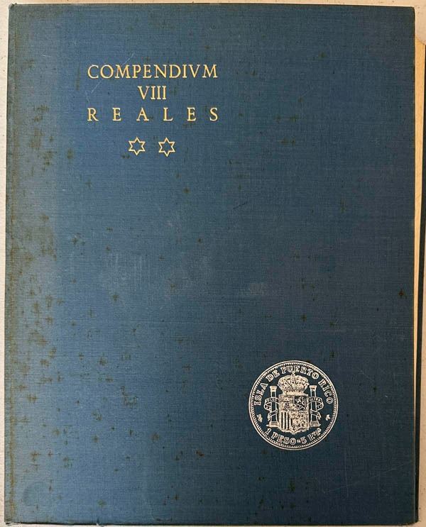 Calbeto, Gabriel, Compendium VIII Reales Compendio de las Piezas de Ocho Reales Volumes 1 and 2, comprehensive study of 8 reales; two volumes with 730+ pages with black and white illustrations; Volume 1 has spine damage and Volume 2 has some staining on the cover. Estimate $100 - 150.