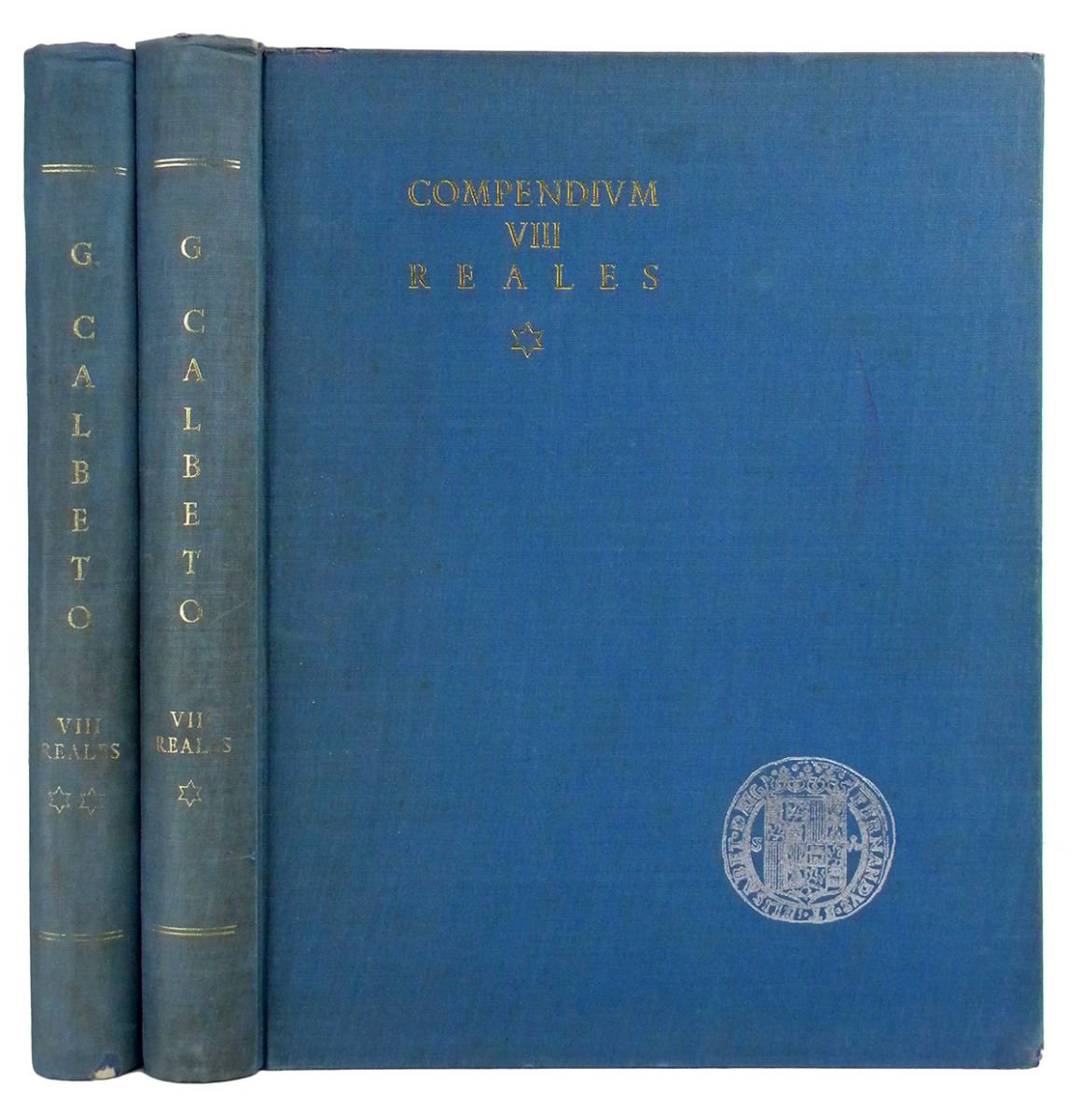 Calbeto de Grau, Gabriel. COMPENDIO DE LAS PIEZAS DE OCHO REALES. San Juan, 1970. Two volumes. Folio, matching original blue cloth, gilt. (2), 733, (1) pages; numerous text illustrations. English and Spanish text. Price list laid in. Bindings worn, as often encountered; very good. An important standard work. Clain-Stefanelli 11323.