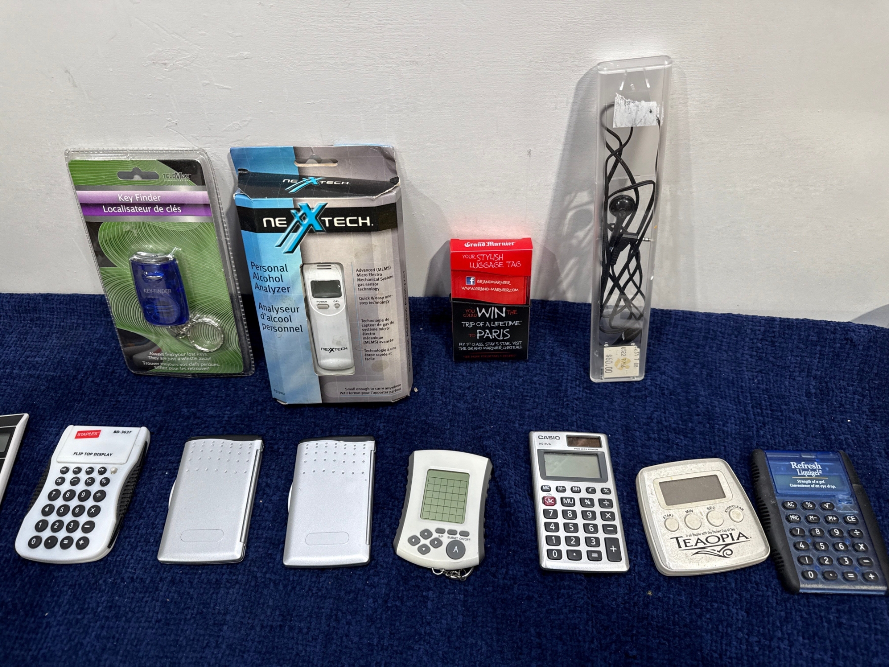 Calculators, Headphones, Key Finder, Personal Alcohol Analyzer