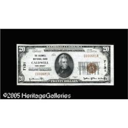 <B>Caldwell, NJ</B></I> - $20 1929 Ty. 1 <B>The Caldwell NB</B></I> Ch. # 7131<BR>A challenging note from a strongly collected locale. This bright <B>About Uncirculated</B></I> retains its original and unmolested paper body. Lot:16926