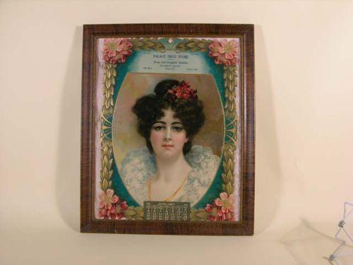 Embossed die cut calendar for Palace Drugstore, Parsons, KS. "1908" full pad. 15" x 20", Ex. cond.