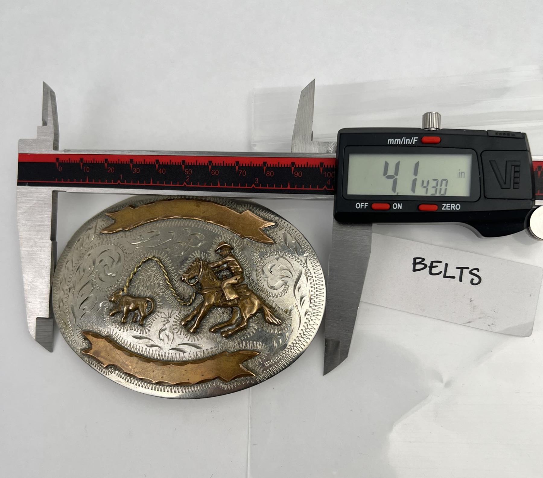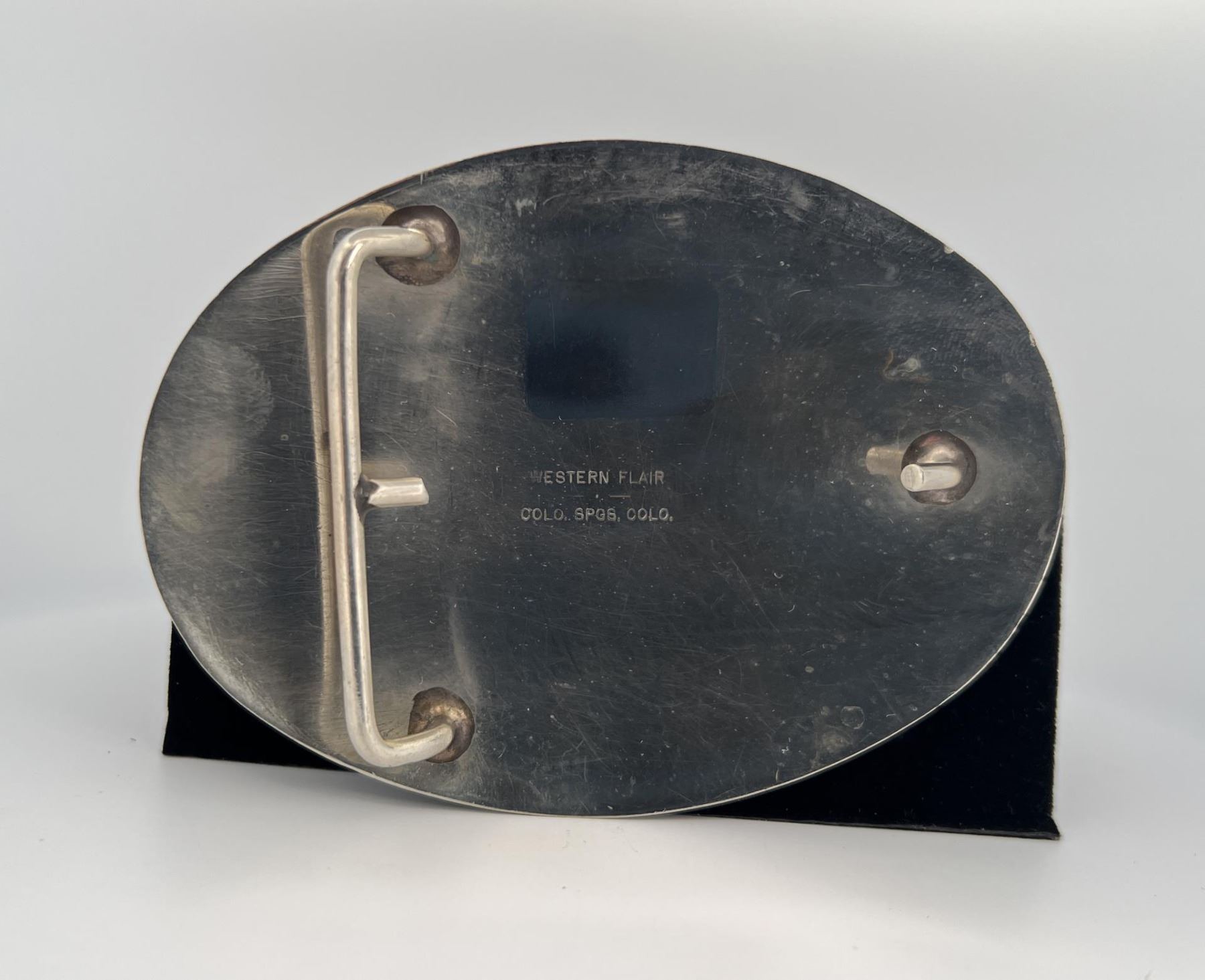 Very nice Cowboy Trophy Buckle. Western Flair Colorado Springs. 4 1/8" long.