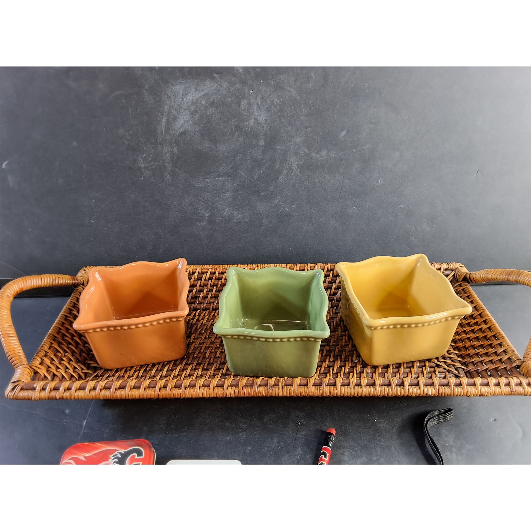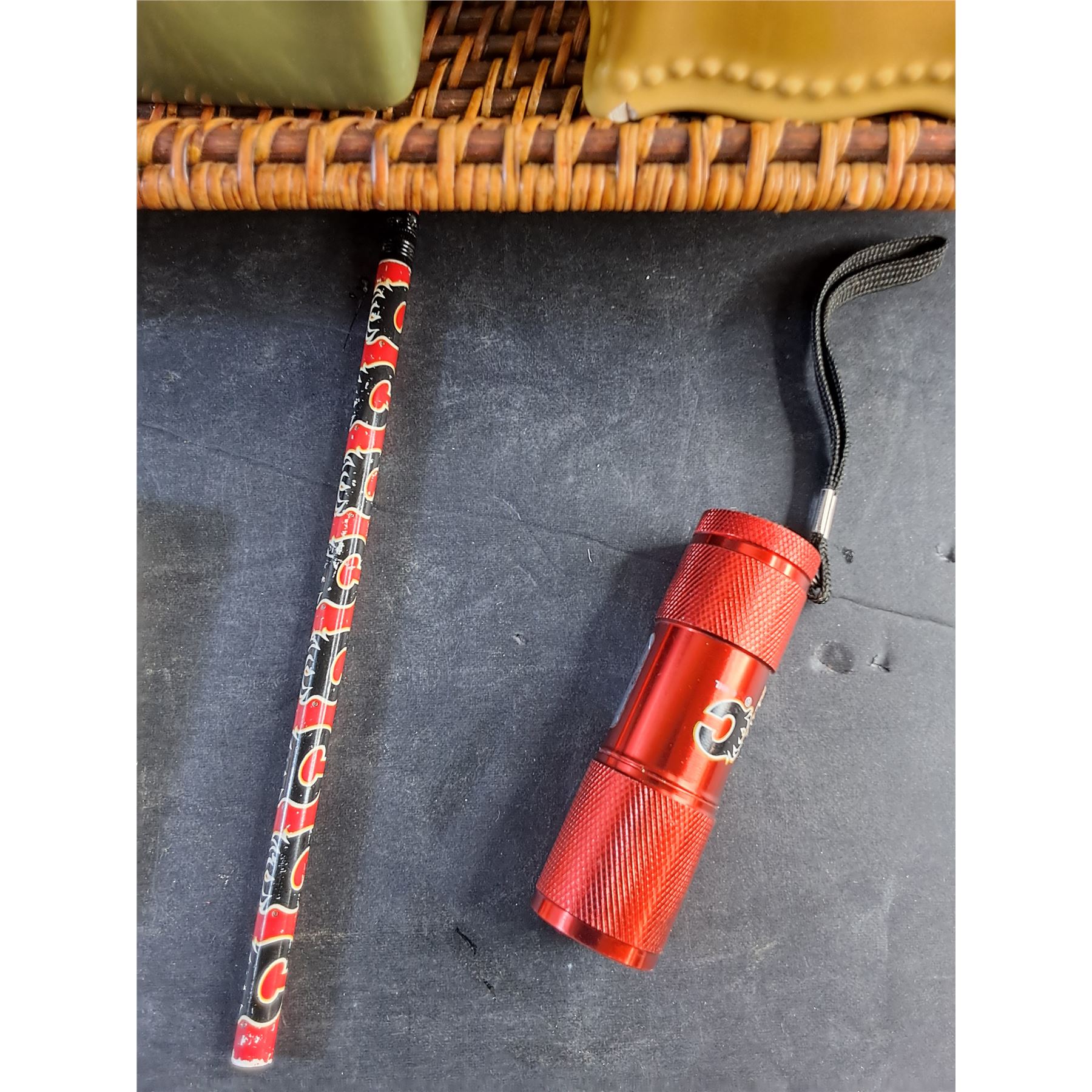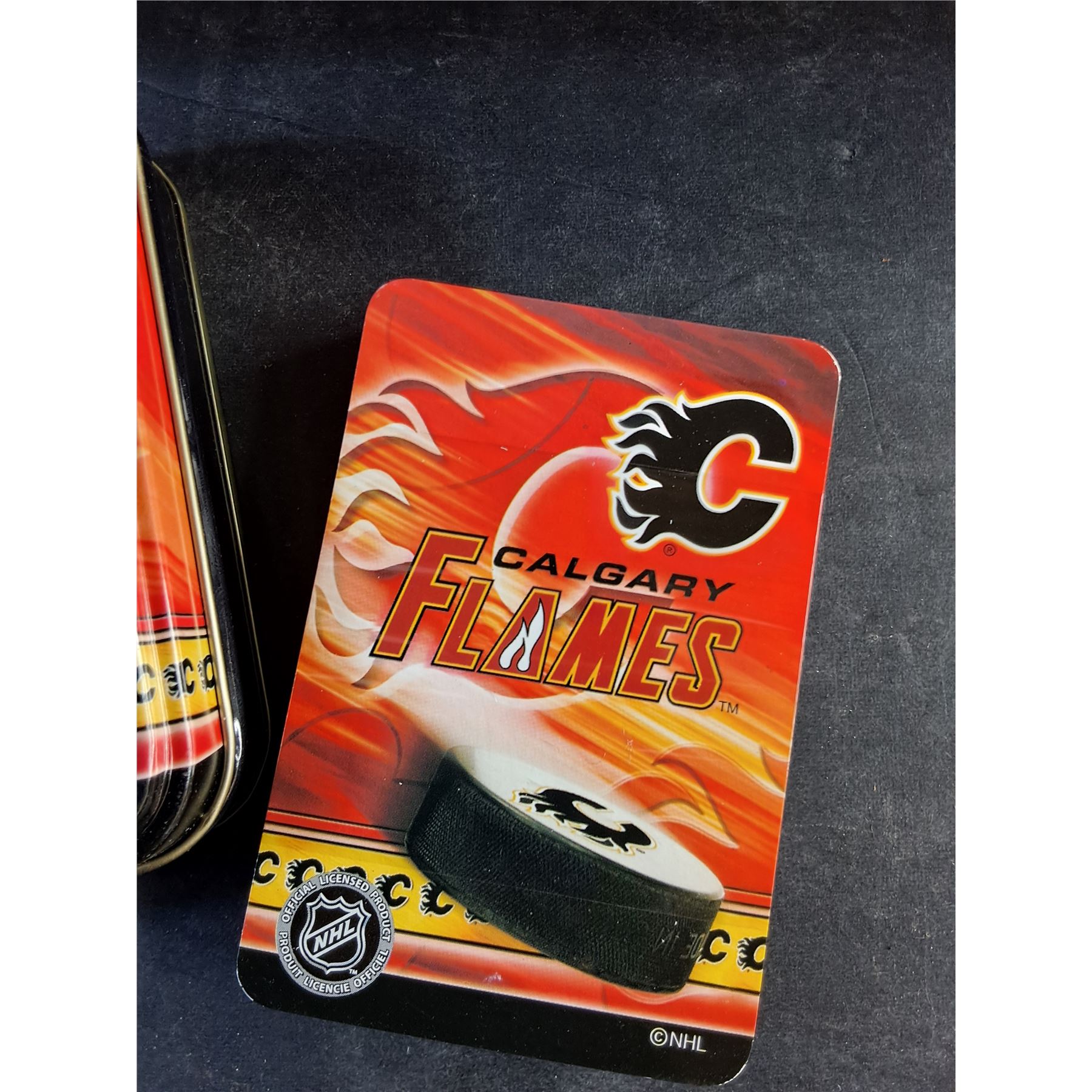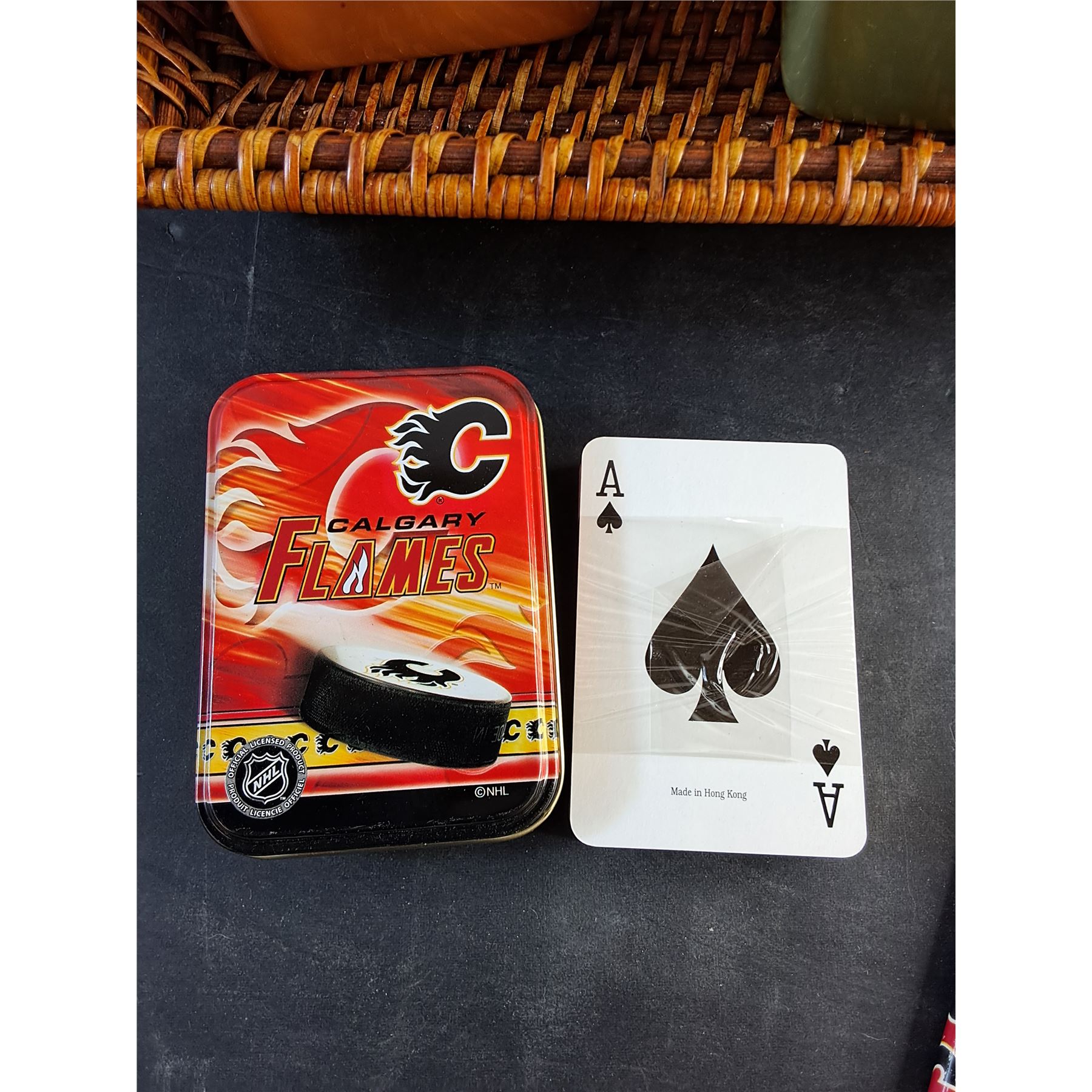 Calgary Flames Playing Cards, Pencils, Flashlight, Pavillion Planters - Chipped, Wicker Serving Tray