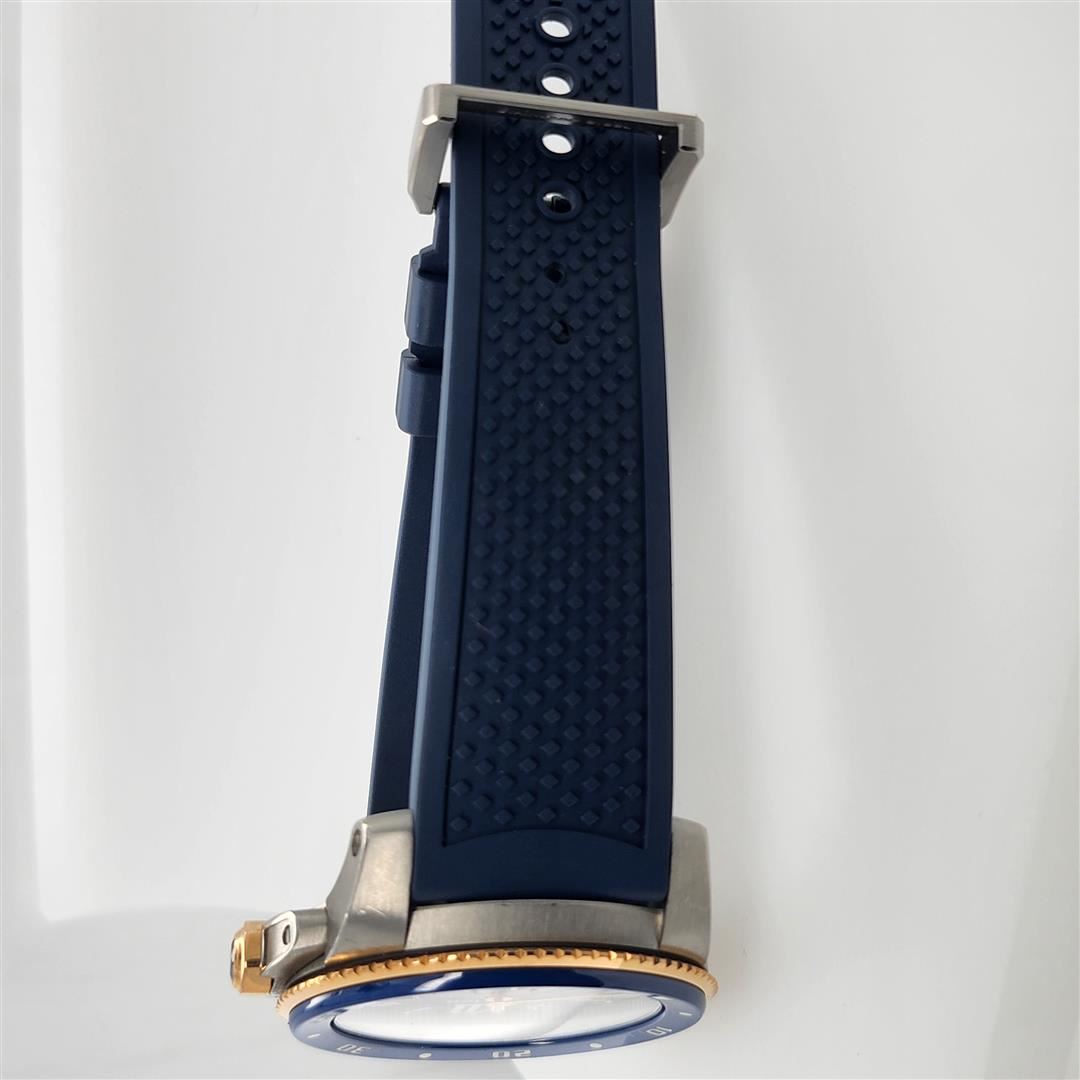 One Calibre de Cartier Swiss Made Automatic Wristwatch. - Swiss Made - Blue Dial - Roman Numeral Hour Markers - Blue Ceramic Bezel with Super-LumiNova Markers - Faceted Steel Crown Set with a Synthetic Spinel - Sword Shaped Blued Hands - Date Feature - Small Seconds Sub-Dial at 9 O'Clock - 48 Hour Power Reserve - Self-winding Automatic Movement - Cartier Caliber 1904-PS MC - Vibrations Per Hour: 28,800