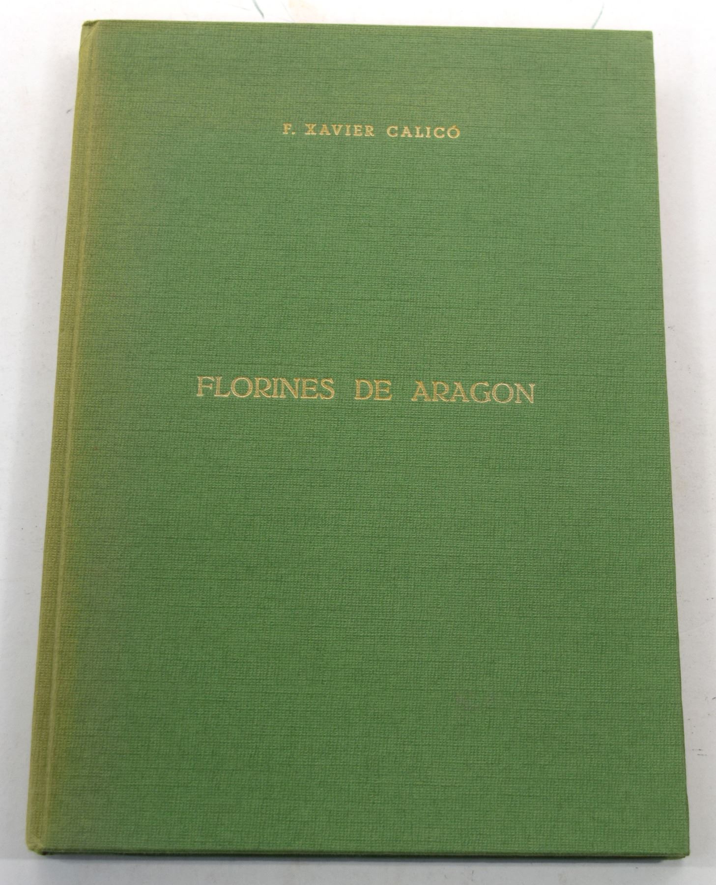 Calico, F. Xavier. FLORINES DE ARAGON. X. & F. Calico. 1966. 8vo, 113 pages; Hardcover; Green cloth gilt; sun-faded spine; This book is a catalog and guide to the medieval gold florines of Aragon. Coins are presented with b&w photos and line illustrations and arranged by reign and mint. Subject: Coinage - Spain
