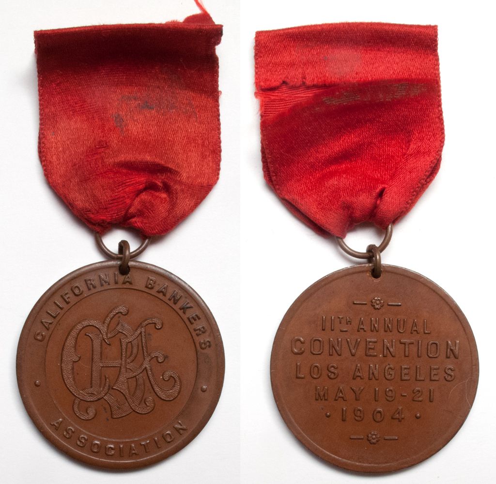 11th Annual CONVENTION Los Angeles May 19-21, 1904. With attached red ribbon. Extremely fine.City: Los AngelesCounty: L.A. State: CADate: 1904
