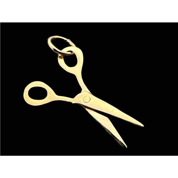 14K Gold Mechanical Scissors Charm. 0.1g. Marked 14K. Scissors Open And Close. Approximately 0.75 L x 0.5 W Inches. ALL CREDIT CARDS WILL BE MANUALLY