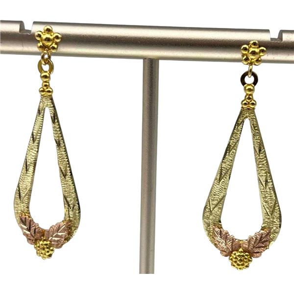 10K Black Hills Gold Drop Earrings. 3.1g. Marked Landstroms, 10K, L. Approximately 1.5L x 1.5W in. ALL CREDIT CARDS WILL BE MANUALLY VERIFIED PRIOR TO