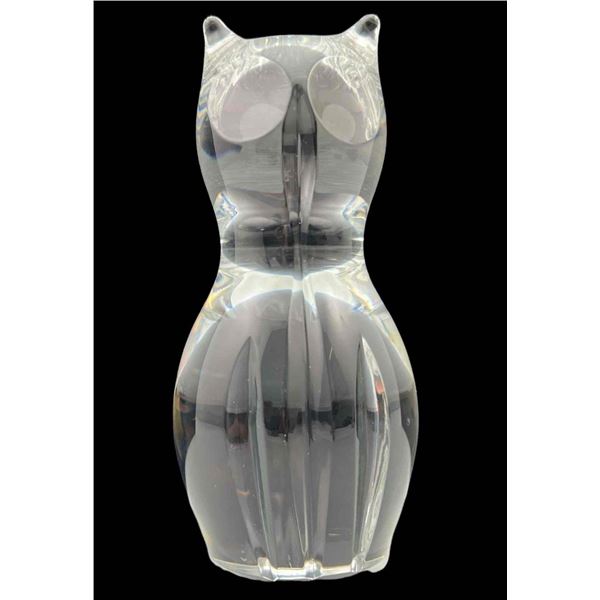 Lalique Crystal Art Glass Owl. Marked Cristal Laliquie Paris. Hand signed. Approximately 3.5 H x 2.25 W x 1.875 D Inches.