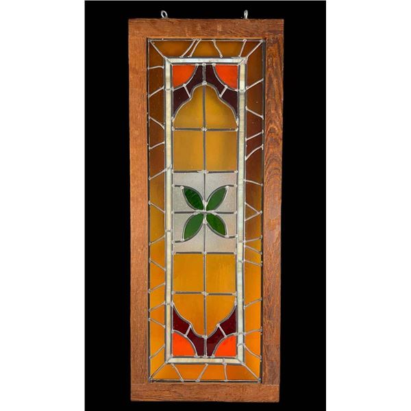 Stained Glass Window. Approximately 39.5L x 15.75W in. Sight Approximately 36L x 12.5W in.