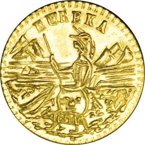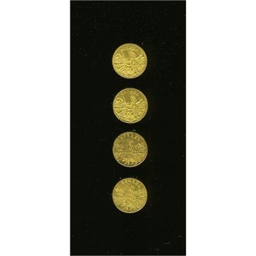 <B>California "Gold" Charms Group Lot.</B></I> Gold. Four one dollar-size California "Eureka" gold charms, all dated 1853. <BR><BR><b>Shipping:</b> Coins & Currency (<a target="_blank" href="http://www.heritageauctions.com/common/shipping.php">view shipping information</a>)