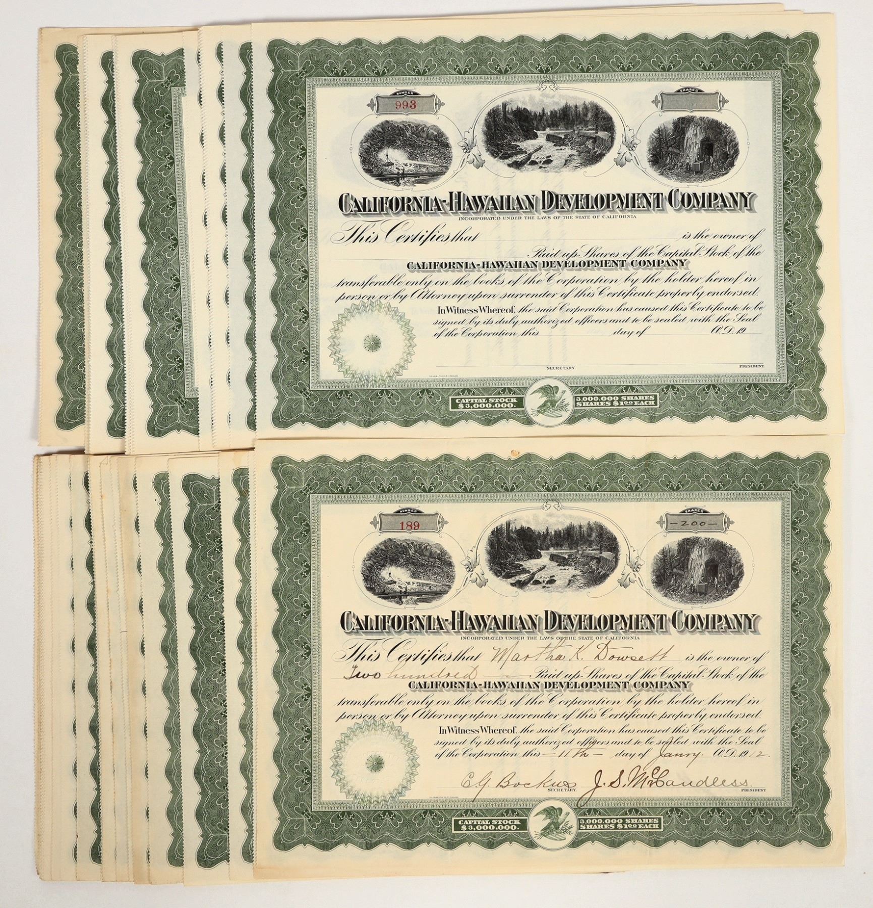 About 50 California-Hawaiian Development Co. c.1910-1930. More than half are issued, some with signatures on reverse.