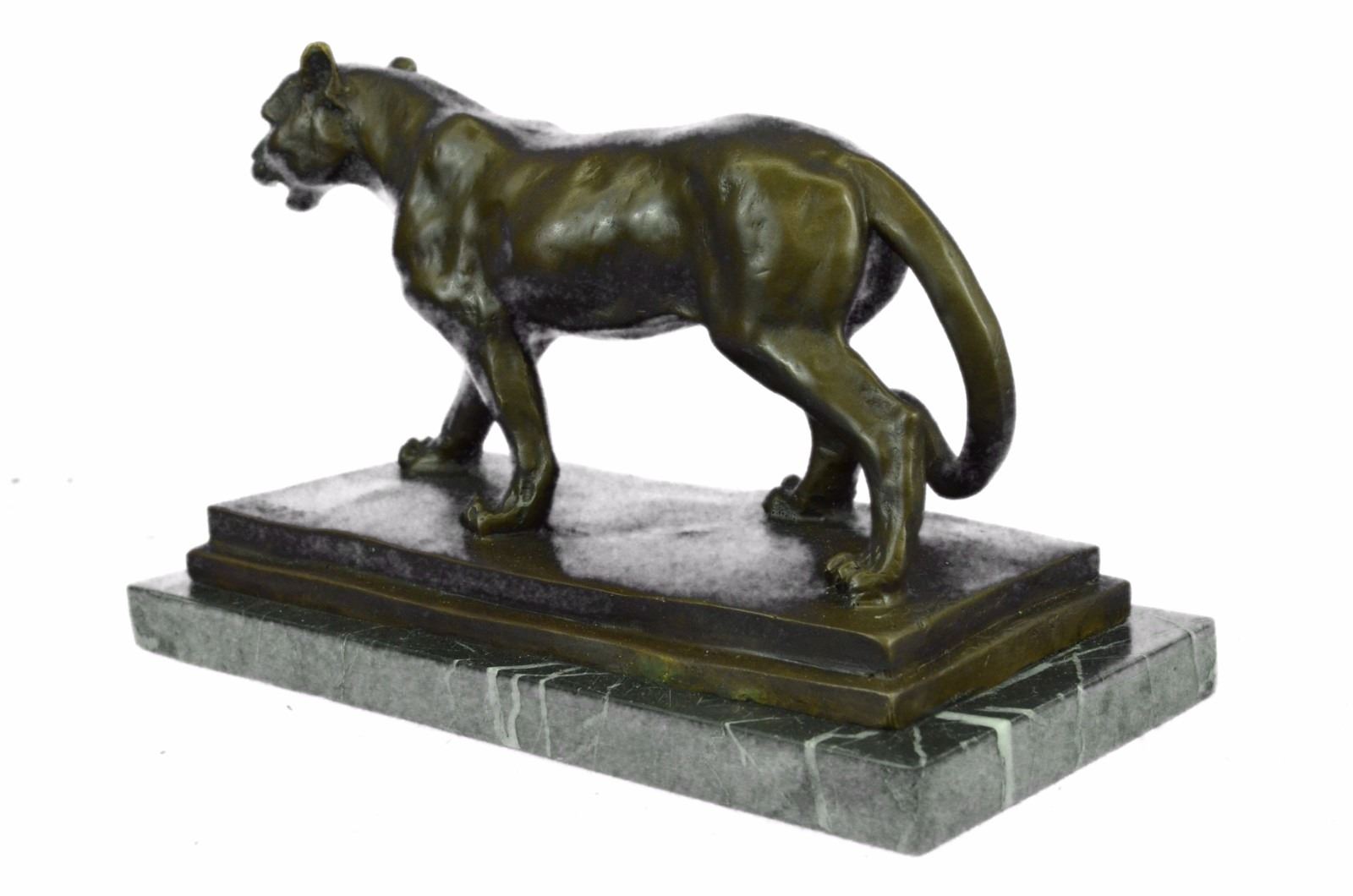 Setting the standard in hand cast bronzes in the superior Lost Wax Process. The lost wax process has long been the preferred method of casting bronze sculptures for the finest museums, galleries and premier collections across the globe. This bronze shows a Jaguar as he walks along. Jaguars are more muscular than leopards, and this bronze is finished in a rich dark brown patina. Bronze Dimensions with Marble Base: Height 6 X Width 10 inches. Weight: 10 LBS.