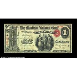 California, MO - $1 Original Fr. 382 The Moniteau NB Ch. # 1712A very attractive example of this classic hoard First Charter ace. Gem Crisp Uncirculated, but with a small repair that must be mentioned. Important notice: We expect to be auctioning lots at the rate of 200-250 per hour. Sometimes eBay Premier live bid software cannot keep up with that pace, so we strongly recommend that you place a realistic proxy bid now as insurance to avoid disappointment. Also please note that all Heritage/CAA lots purchased through eBay Premier carry a 20% Buyer's Premium. Please make sure you read the Terms and Conditions.