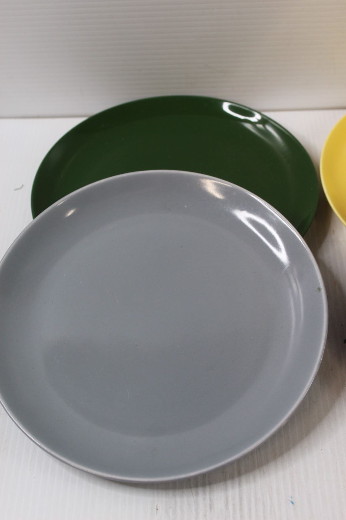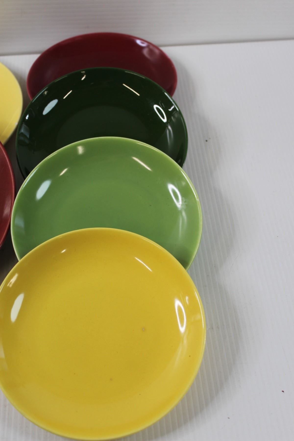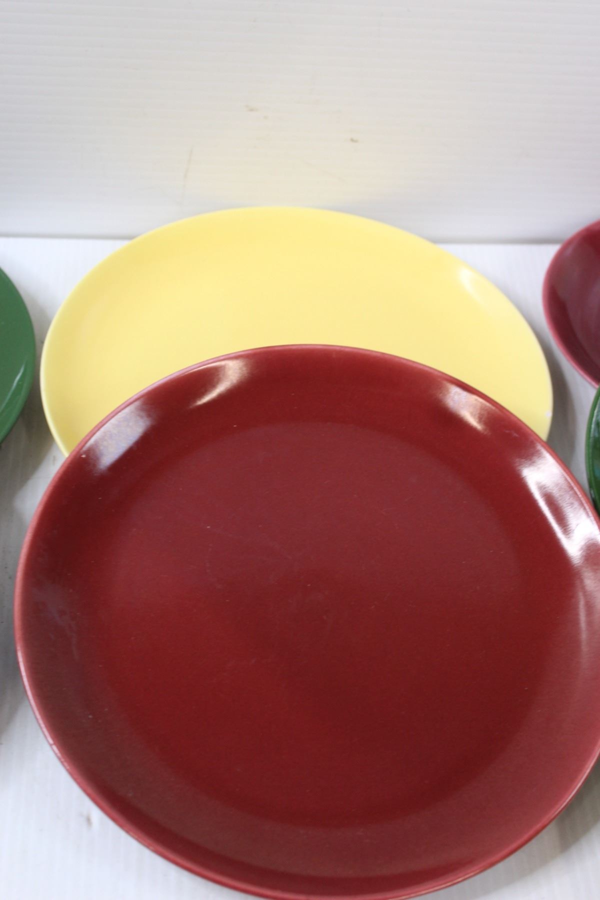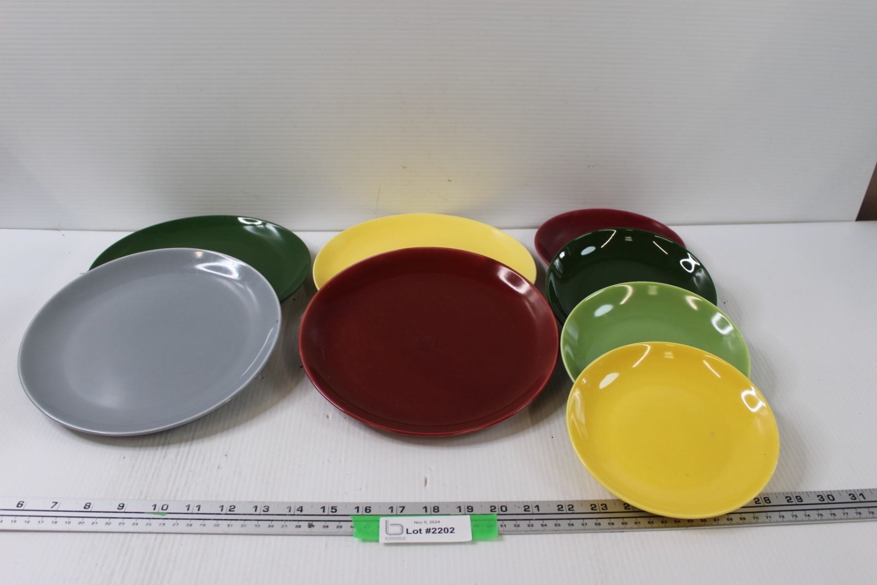 California Modern Brand: (4) Colored Dinner Plates, (4) Colored Dessert Plates Set