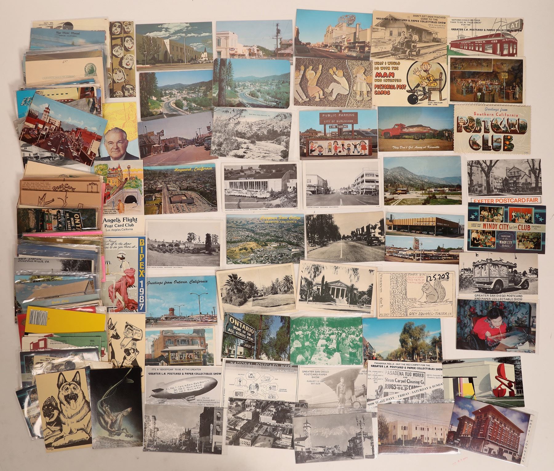 This is a collection of 140+ postcards from California, mostly modern, some early, c1906-80s. Included are some RPCs, mostly chromolith, some canceled, others blank. Please see photo for more details.
