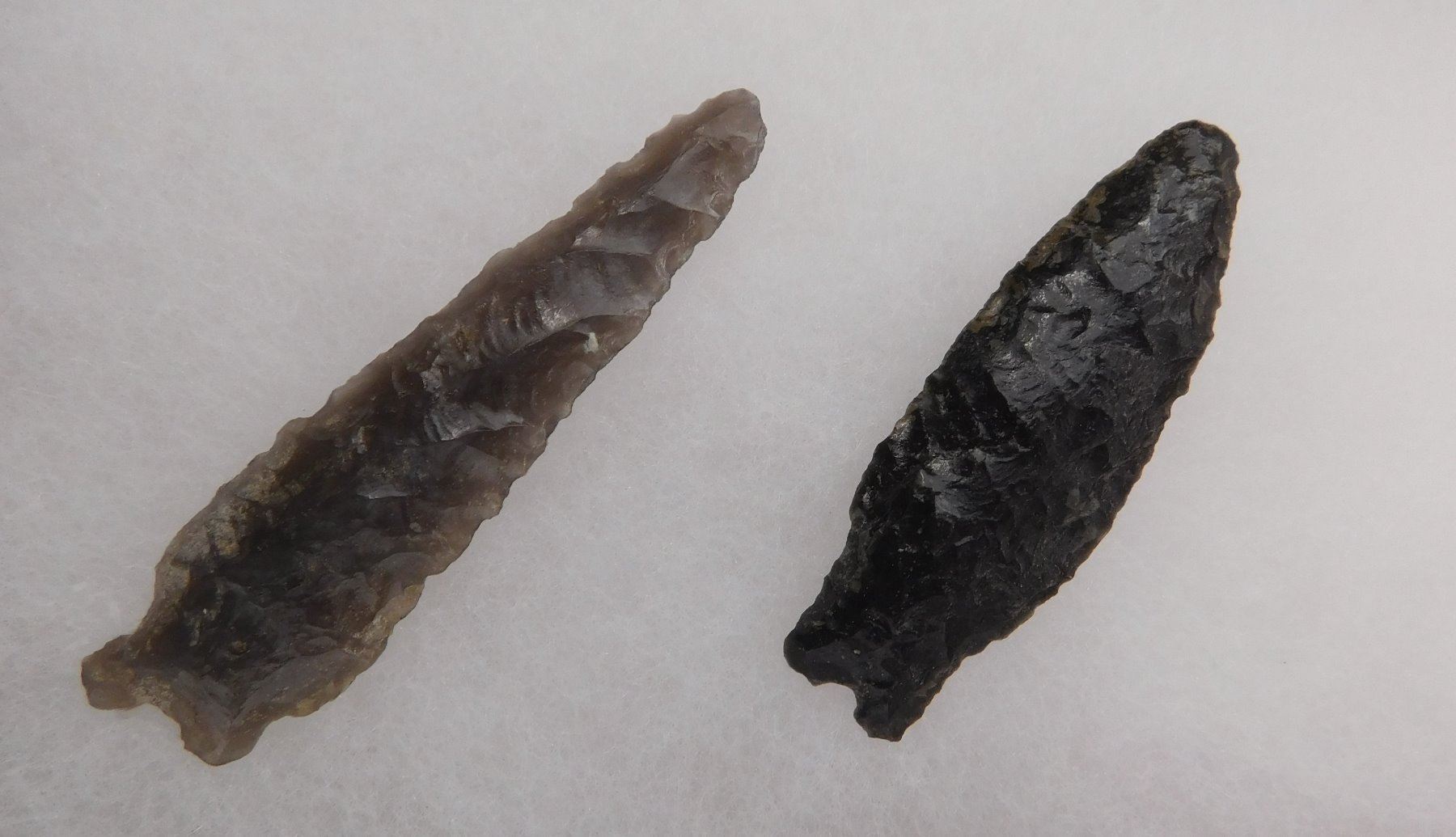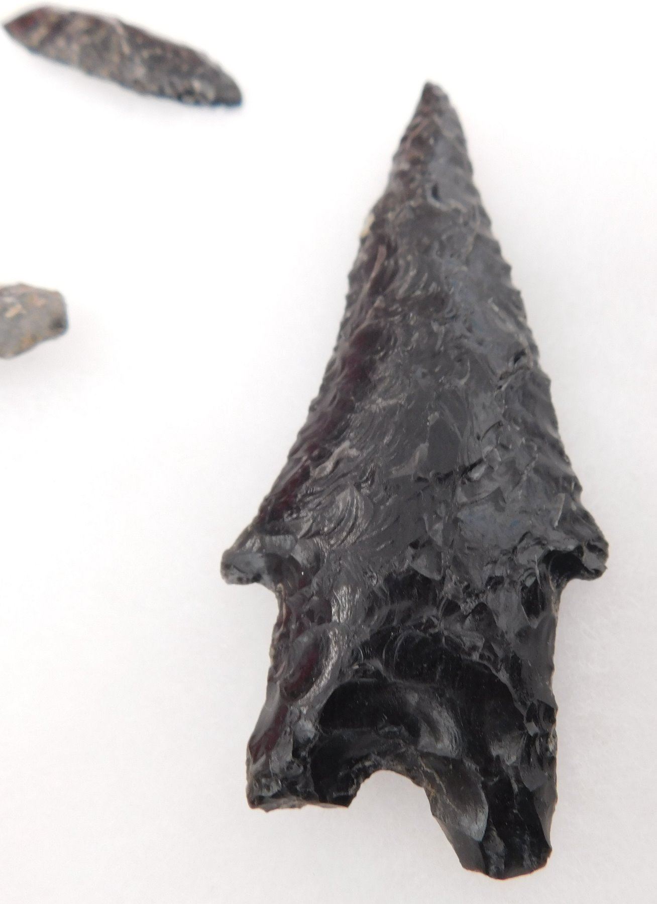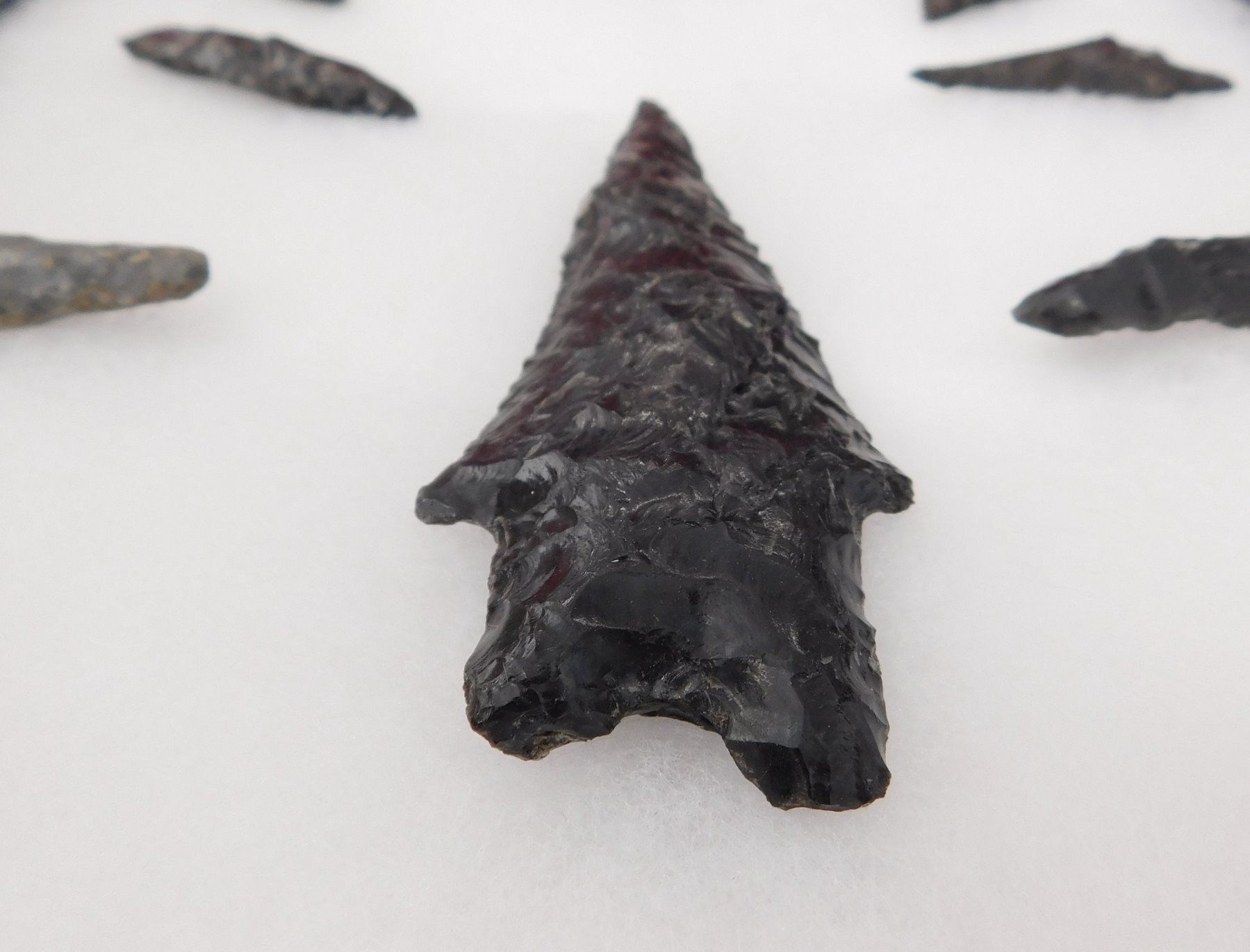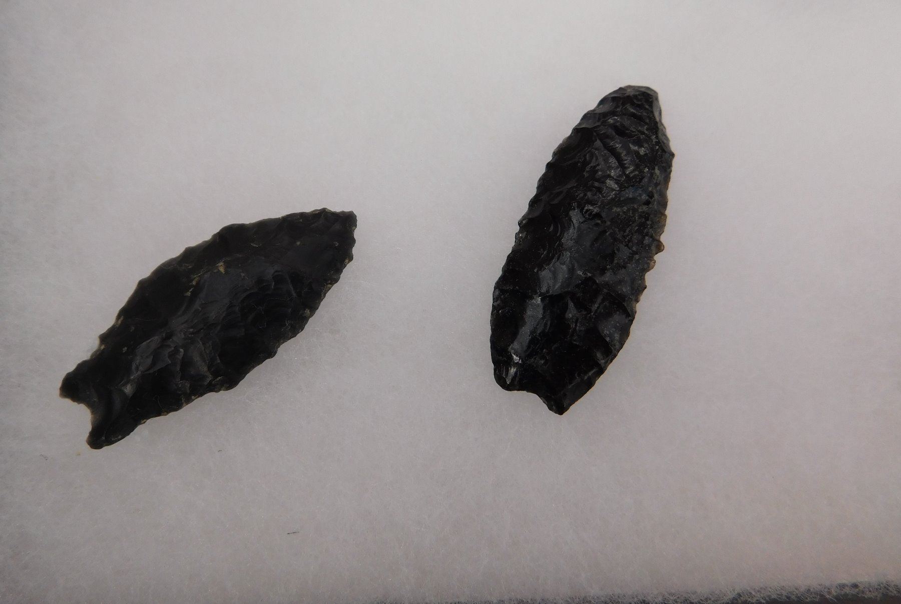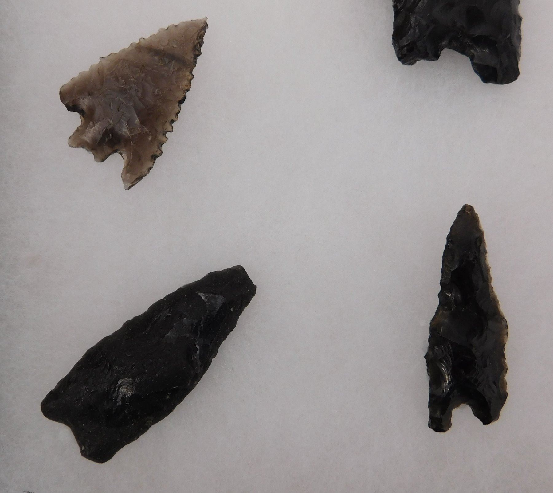 California Obsidian Collection, pre-historic items. Made of obsidian, the longest measures 4 1/4". Northern California. Many Pinto Basins, paleo items. Frame not included. Condition: Some dings, as found, see images. Shipping: $16.50 w/insurance and signature.