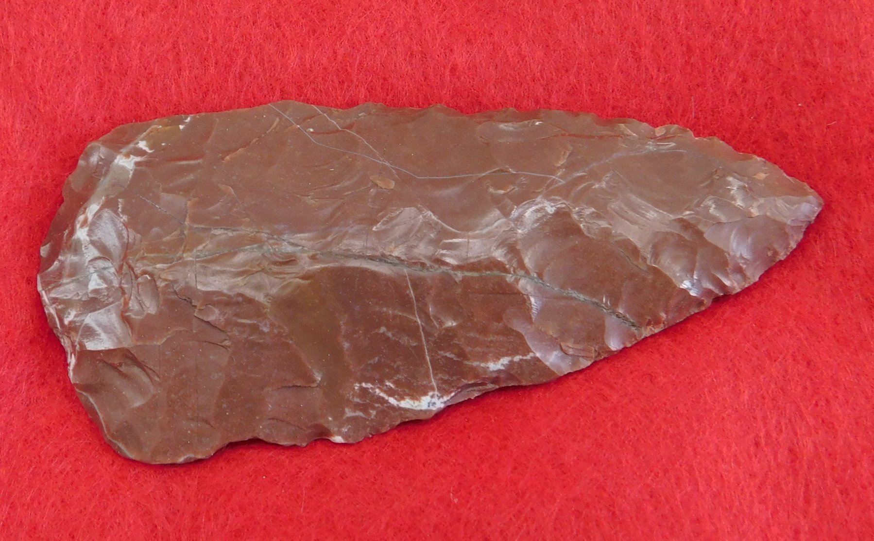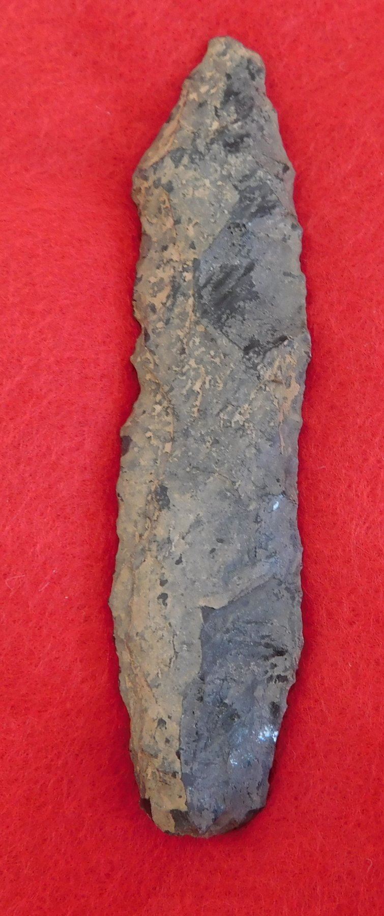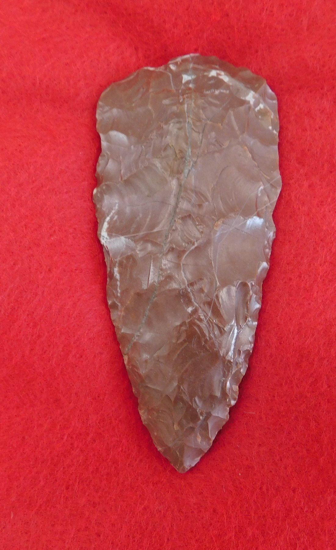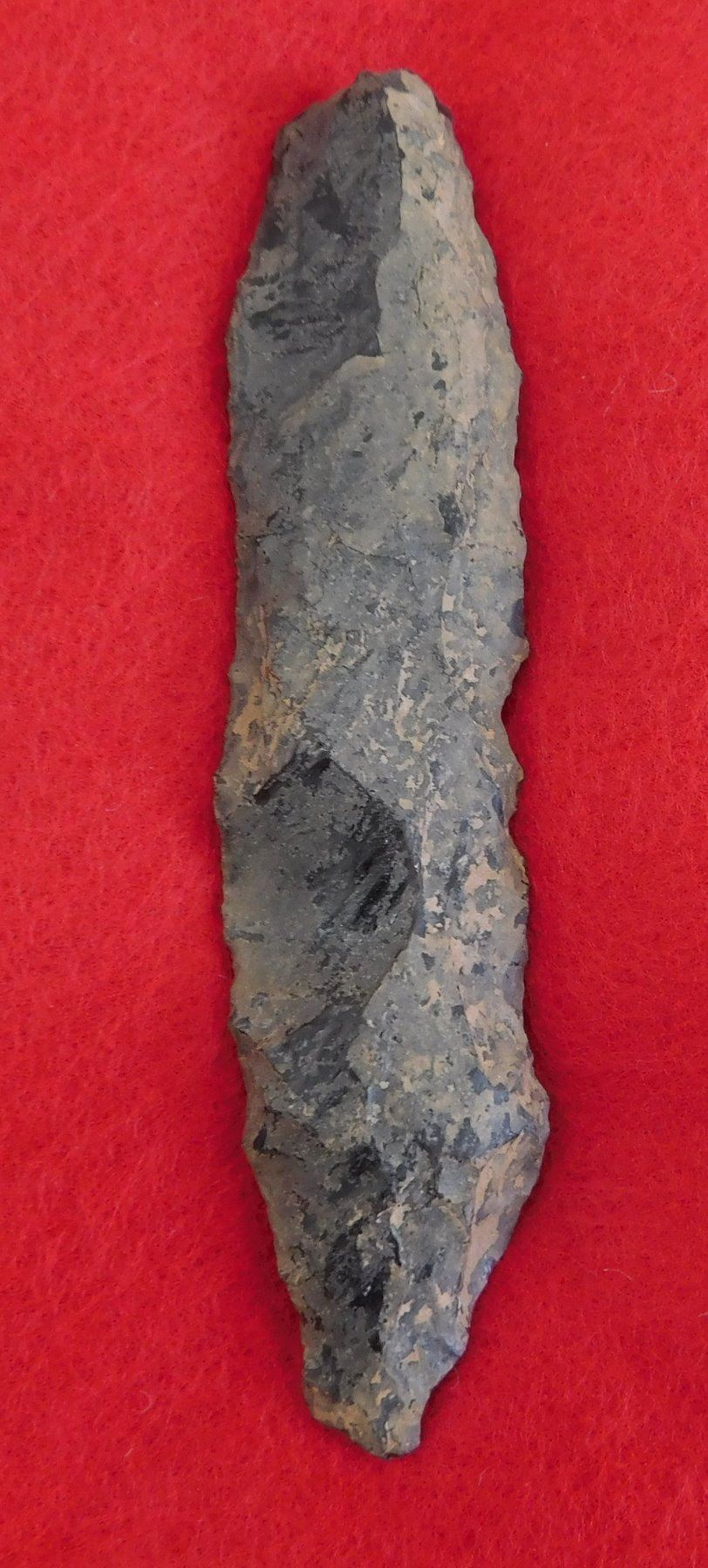California Paleo Crescent Flint Collection, paleo period. Made of obsidian, the largest item measures 4". Kings County, California. Crescent has crack and is 4" long. Frame not included. Condition: As found, crescent has crack, see images. Shipping: $20.00 w/insurance and signature.