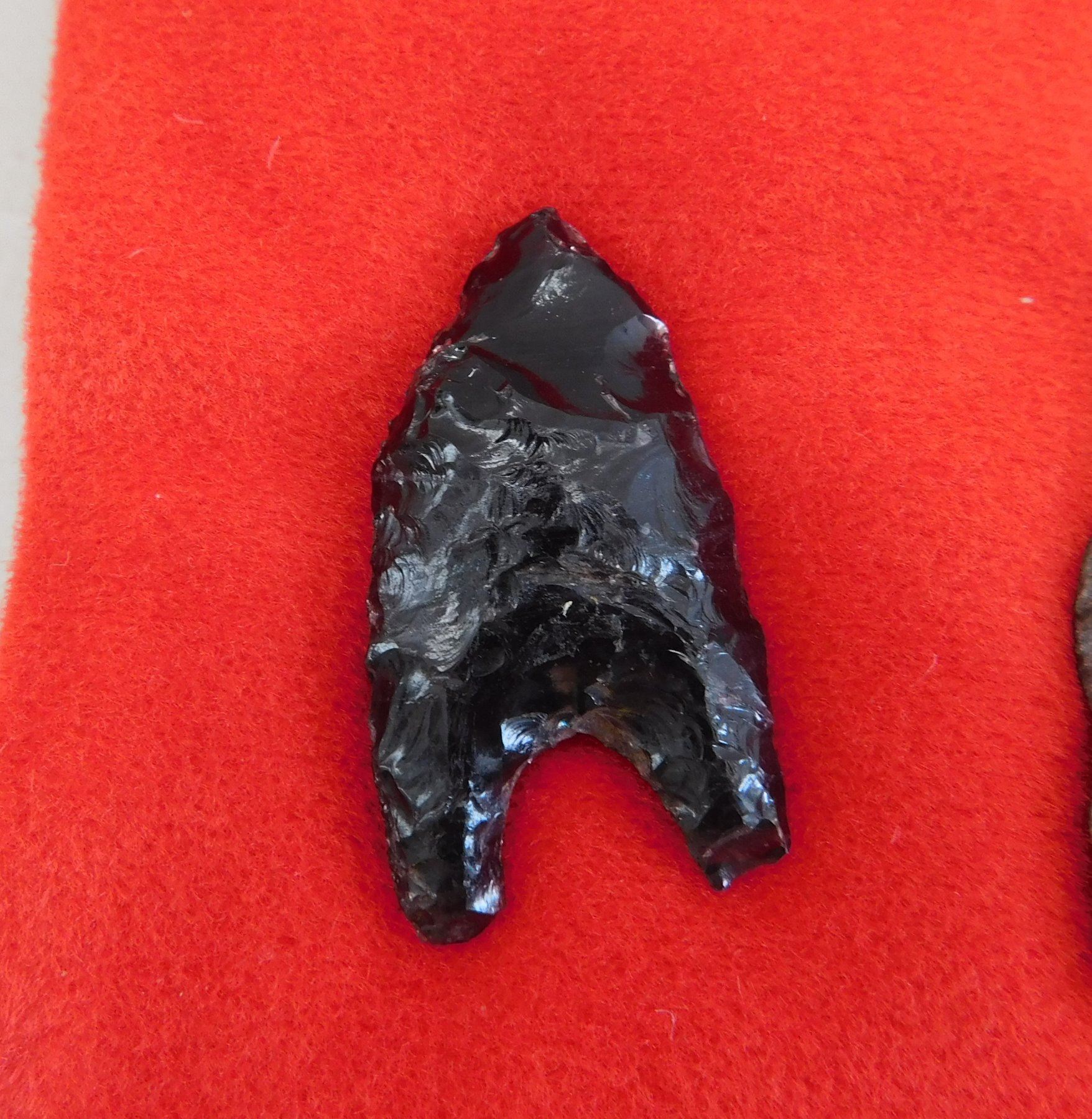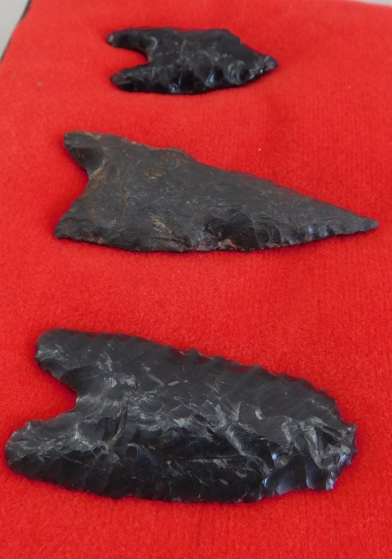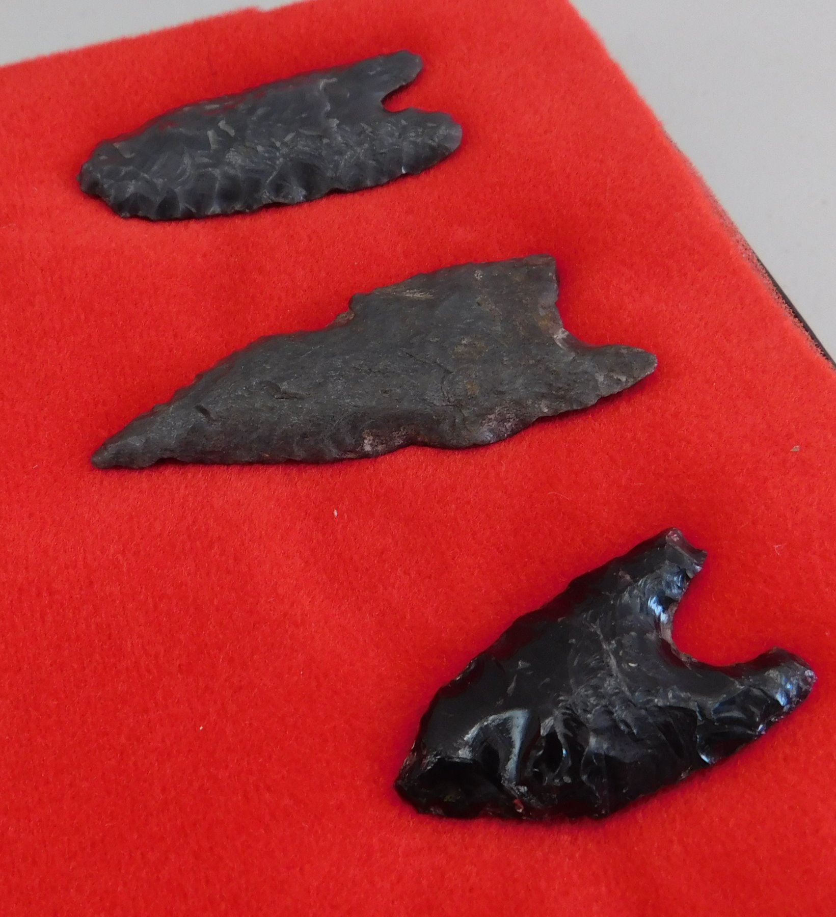 California Paleo Flint Collection, paleo period. Made of obsidian, the largest item measures 2.5". Kings County, California. Frame not included. Condition: As found, see images. Shipping: $20.00 w/insurance and signature.