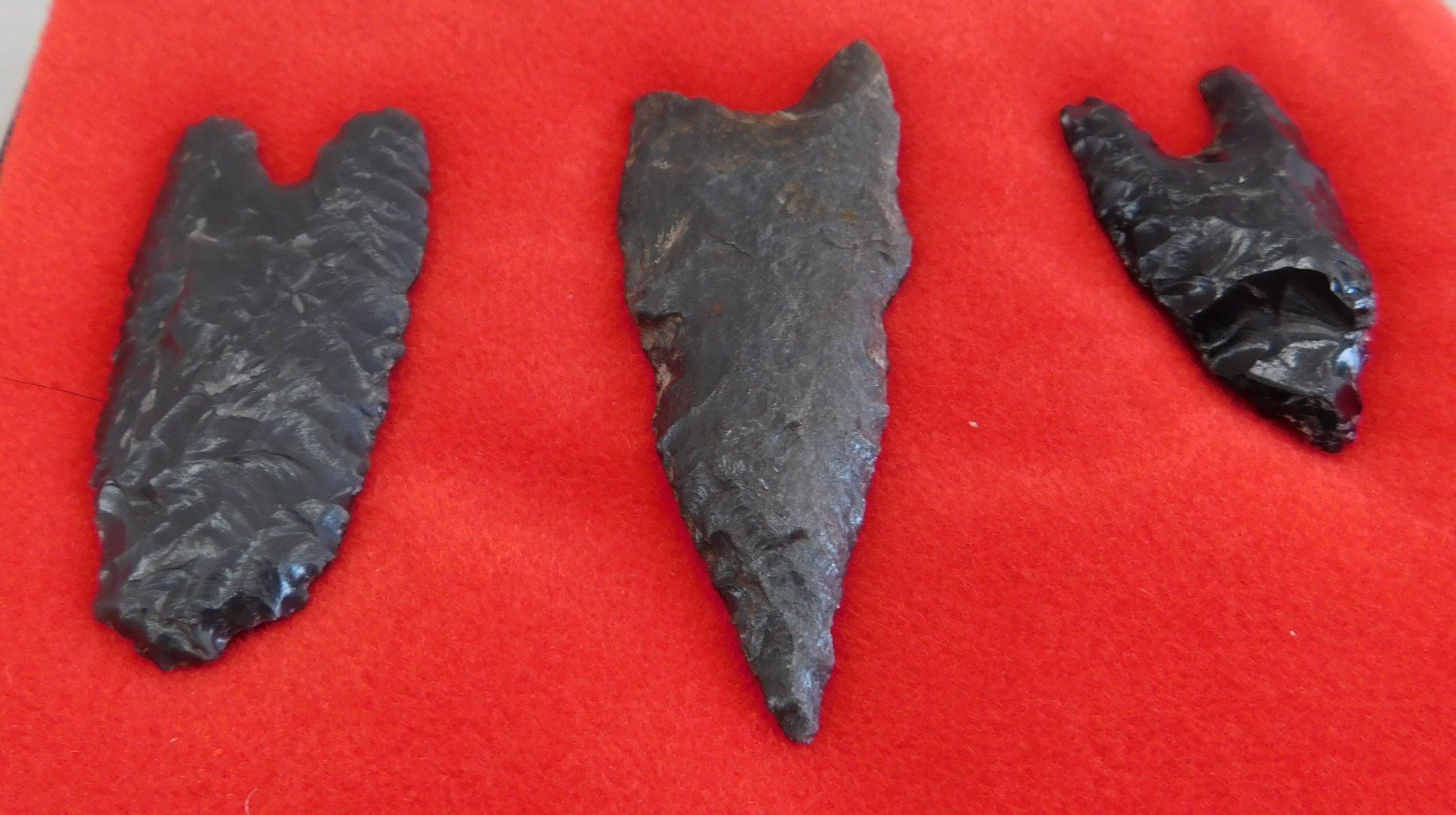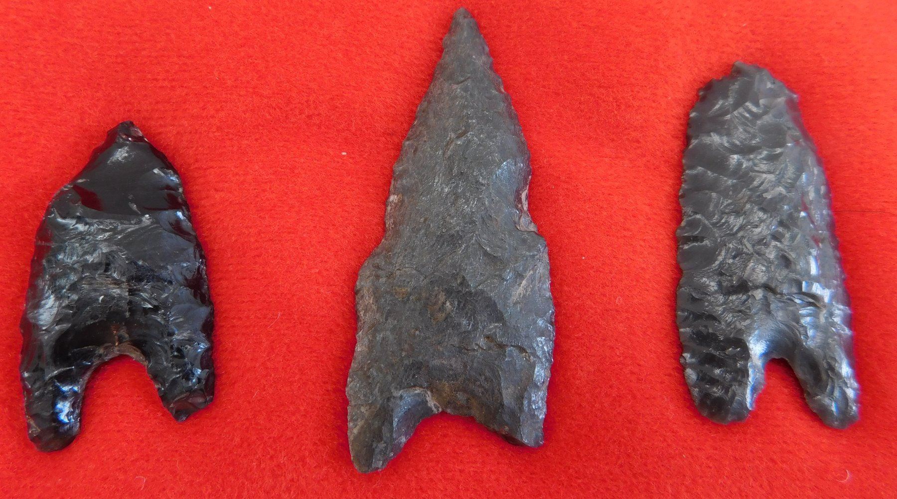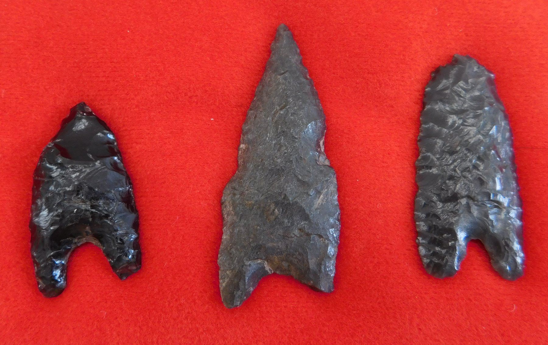 California Paleo Flint Collection, paleo period. Made of obsidian, the largest item measures 2.5". Kings County, California. Frame not included. Condition: As found, see images. Shipping: $20.00 w/insurance and signature.
