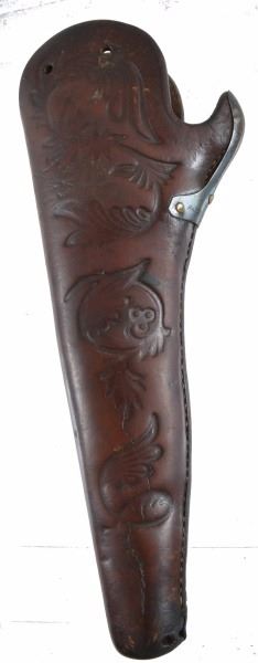 Maker unknown. Floral embellished open top holster that fits a Colt Model 1873 SAA with 7 1/2" barrel.