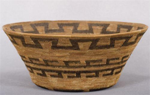 California (Pomo?) Basket. 4 ½” x 10 ½”. Greek key designs. Excellent condition. est $750-1,000)