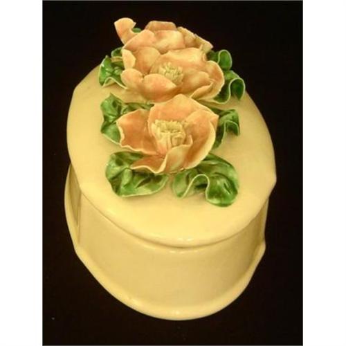 Wonderful example of California pottery. Flower covered box in excellent condition.