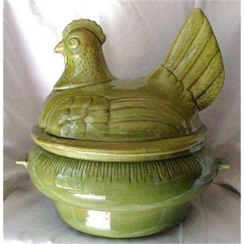 <tr><td>Title:California Pottery Hen on Green Nest Cookie Jar</td></tr>