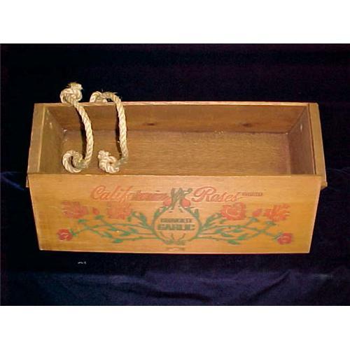 California Roses Brand Braided Garlic Box with 2 Braids. Box measures approx. 19.25 x 6 x 6 inches and is in very good condition.