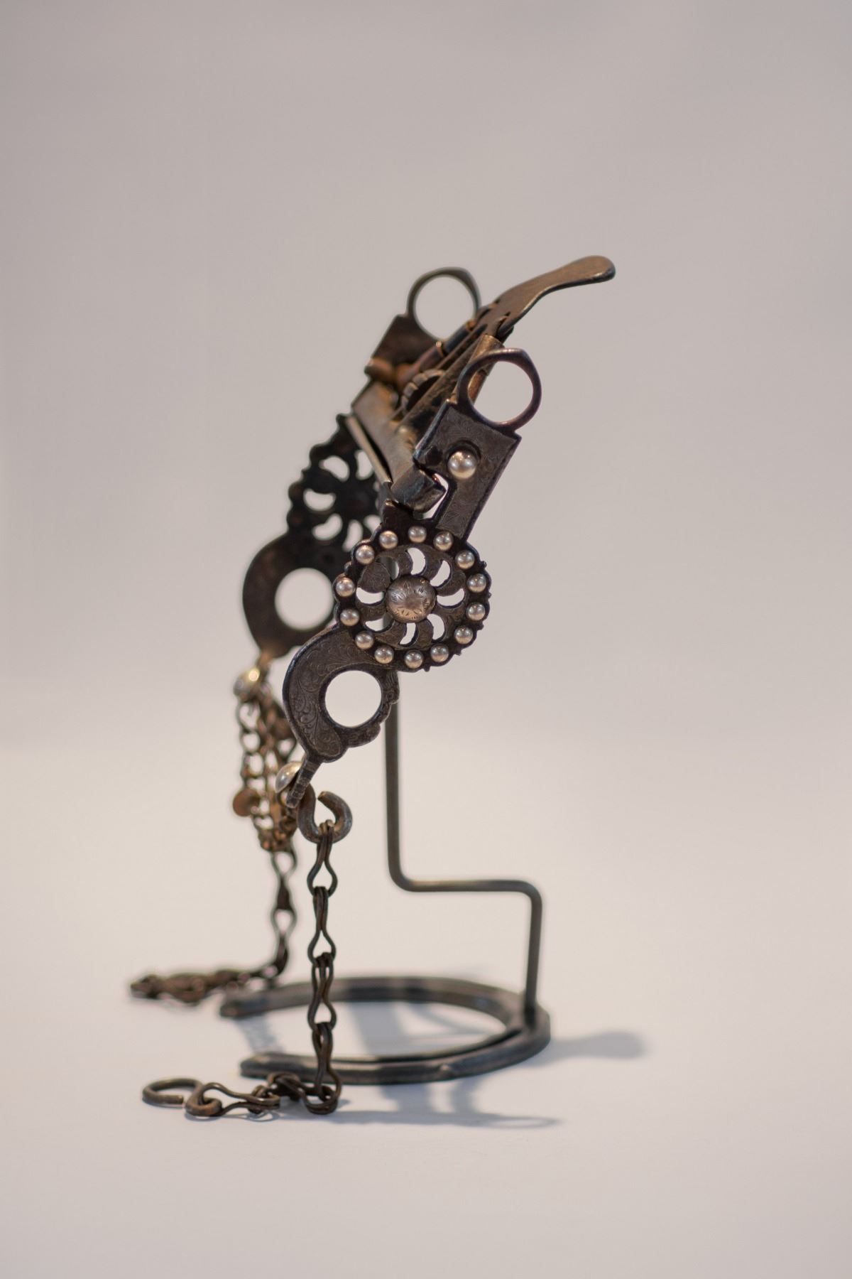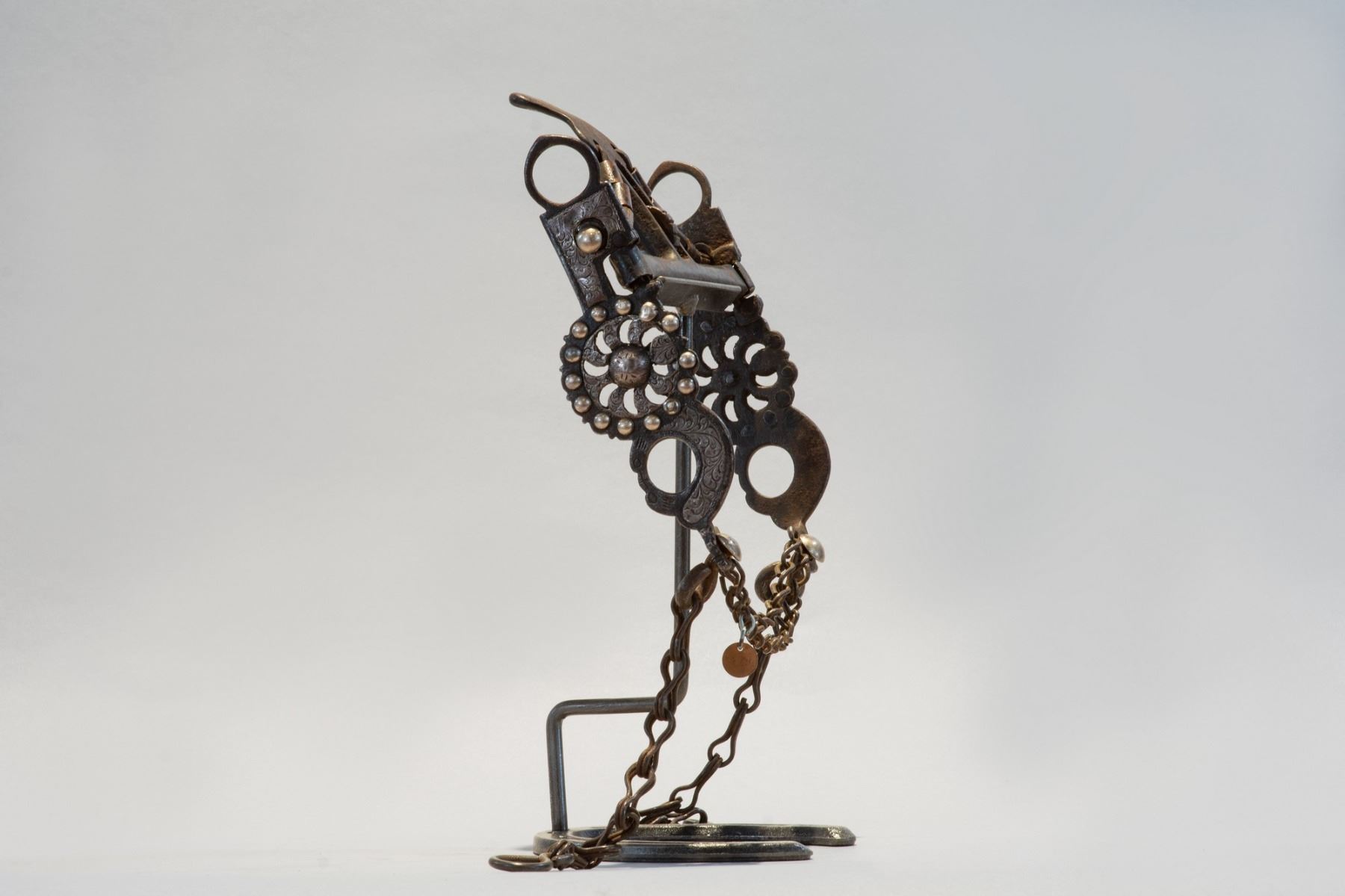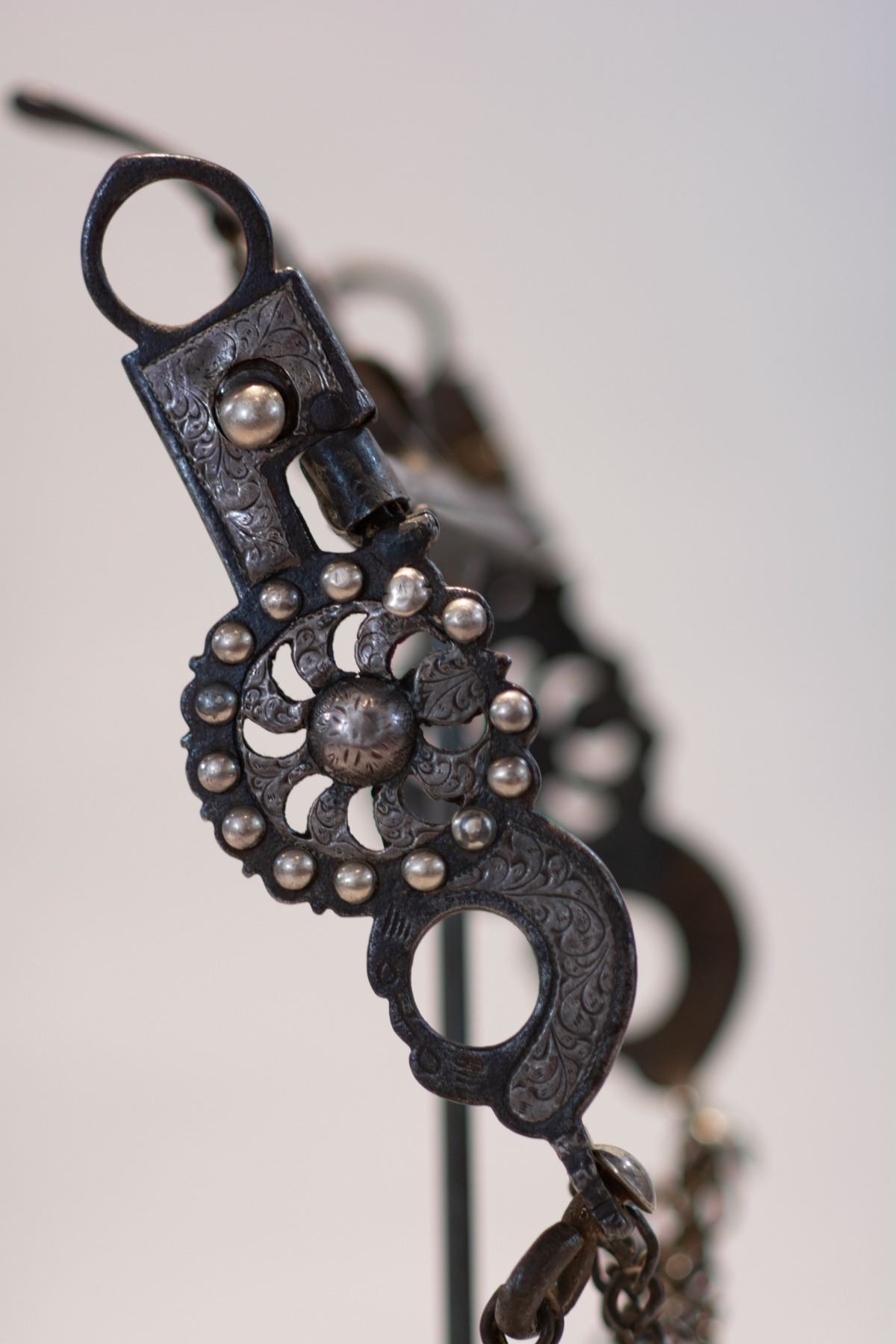 Early Kissing Birds style spade bit, Ca. Late 1800s to early 1900s. With original rein and slobber chains, Nicely engraved on cheek, there were five Hernandez men from 1860s to 1900s in the San Jose area making these types of bits.