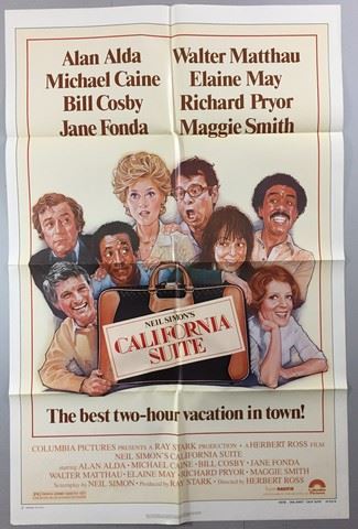 California Suite (Columbia Pictures, 1978). One Sheet. Starring: Alan Alda and Jane Fonda. There are fold lines, marks, stains, tape residue, stamps and paper loss. Good. (27" X 40").
