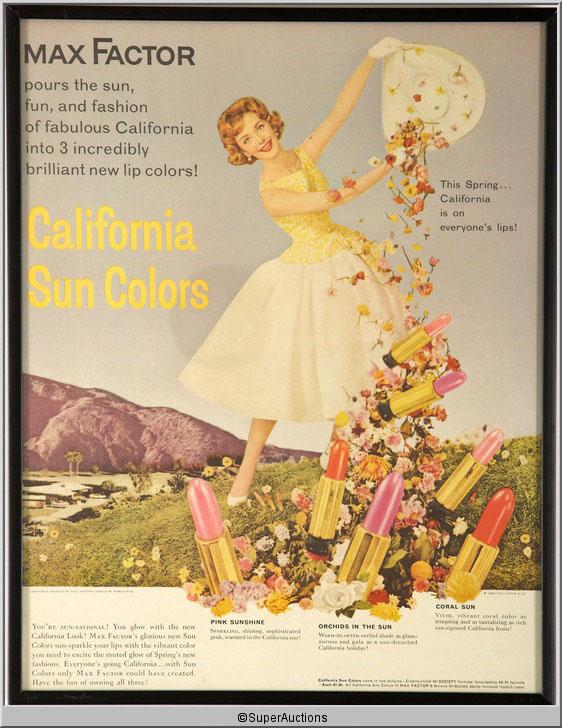 From The Max Factor Collection / Framed California Sun Colors Make-Up Advertisement 1960 / {10 1/2" L x 14" H}