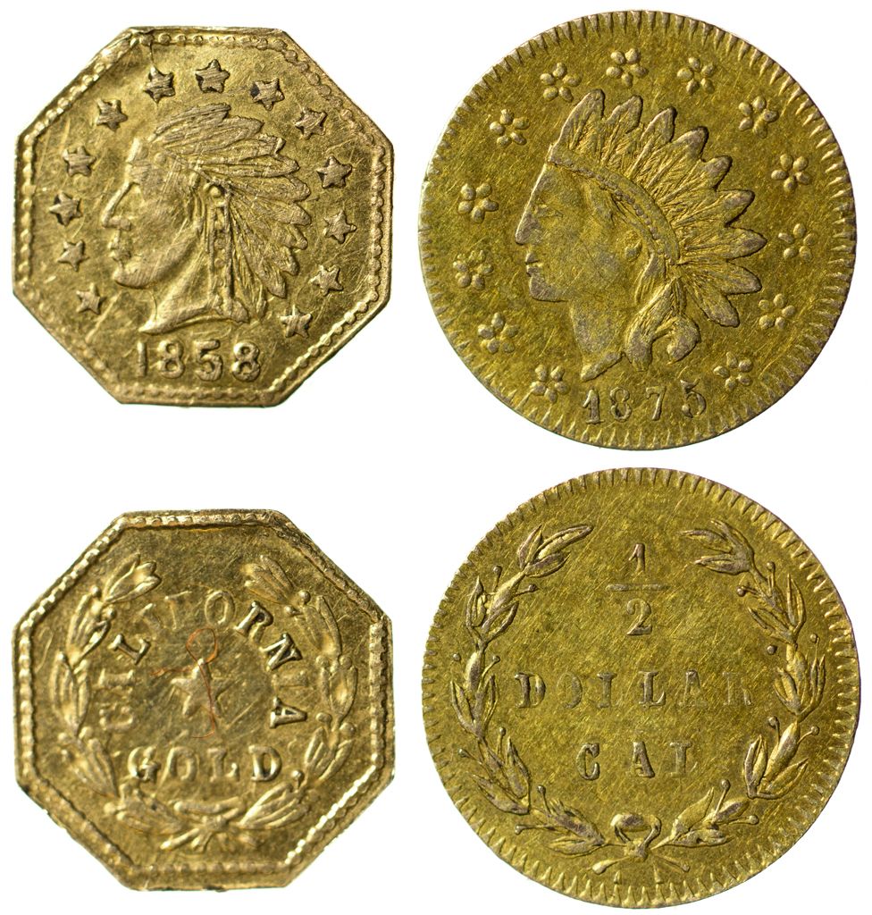 Lot of 2: BG 1037, and an 1858 octagonal charm, possibly 10 or 14 carat. -59074