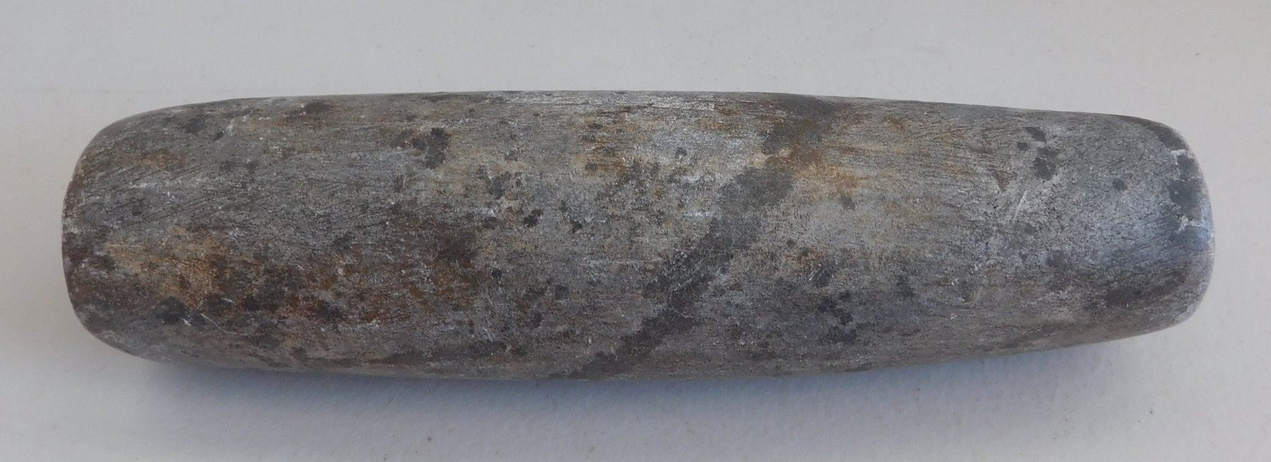 California Tube Pipe, pre-historic item. Made of steatite, the item measures 6 1/2" x 1 1/2". Ramona, San Diego County, California. Parallel sided cloud blower, or tube pipe. Condition: Good, see images. Shipping: $24.50 w/insurance and signature.