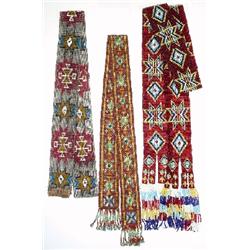 California & Woodlands Indian loomed beadwork (3 pcs.); fine examples, 2 w/fringed ends, probably worn around the neck, 26" to 43"L.