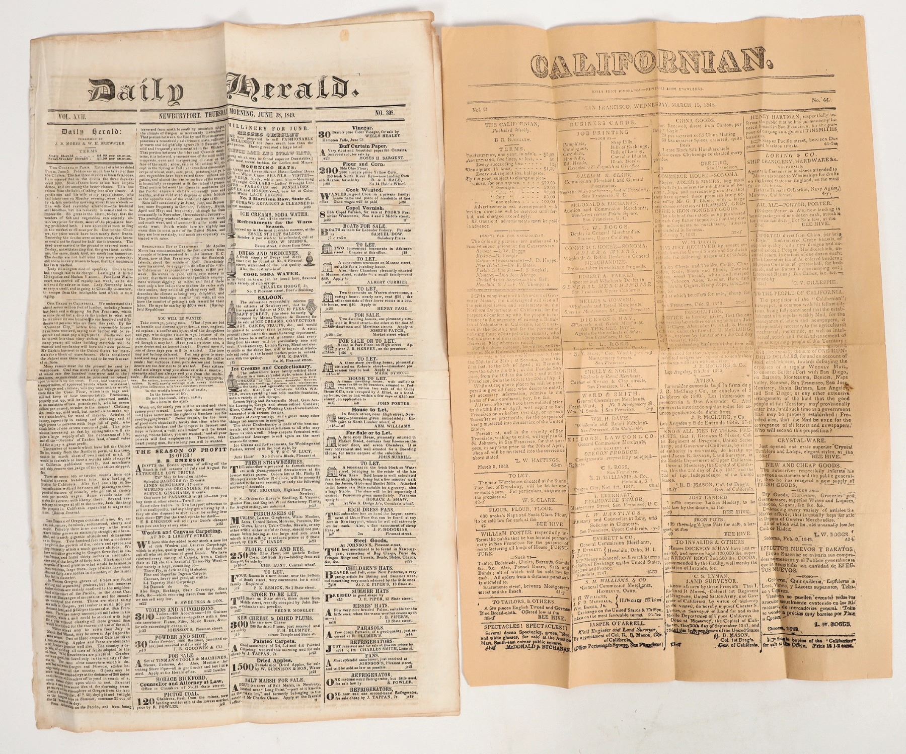 This is a reprint of the "Californian" dated March 15, 1848. It highlights gold found at the saw mill on the American River. With "gold has been found in almost every part of the country". Two pages. Please see photo for details.