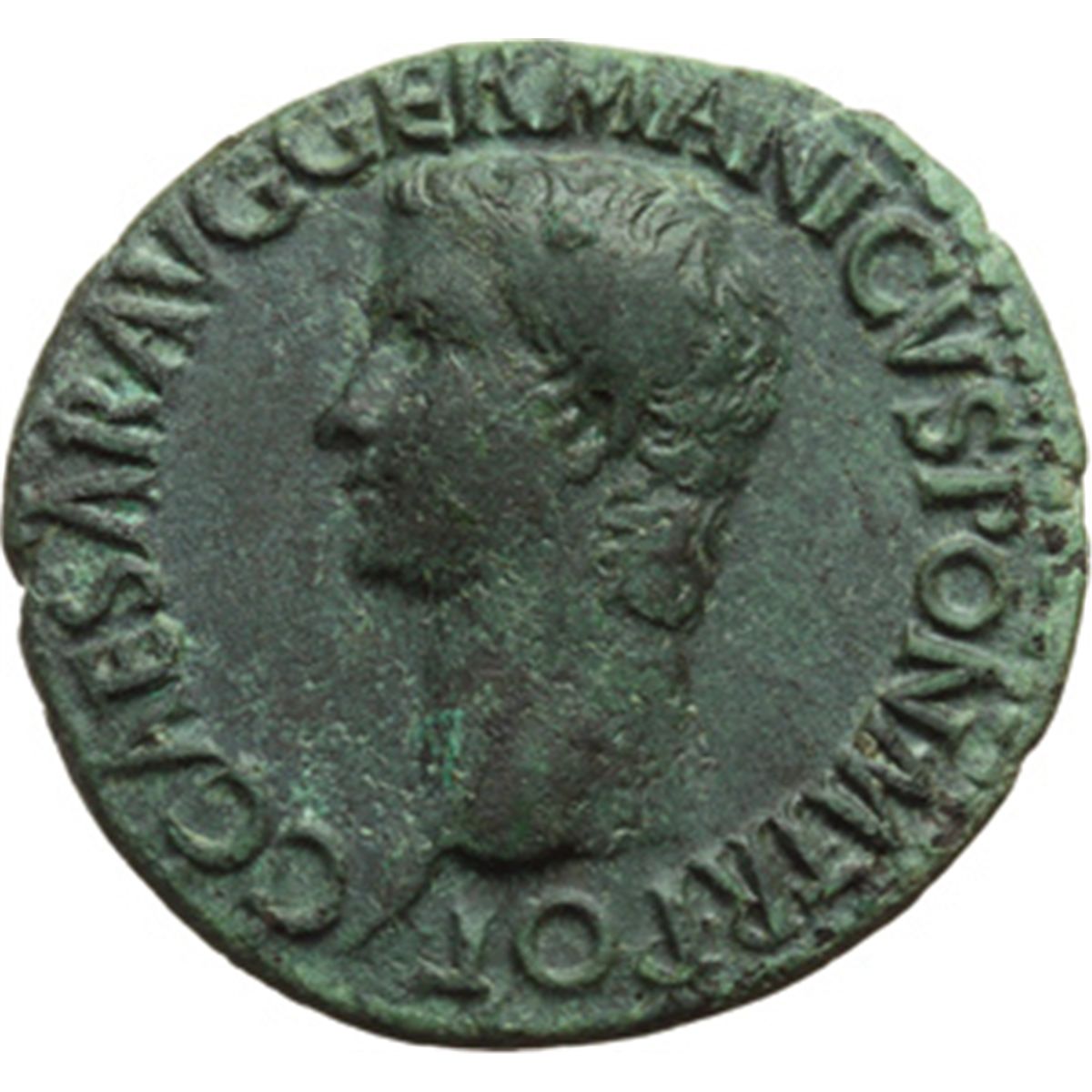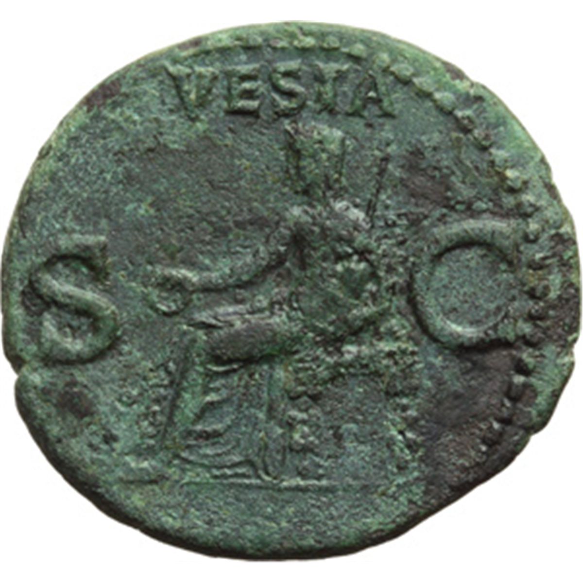 Impero Romano. Caligola (37-41). Asse. D/ C CAESAR AVG GERMANICVS PON M TR POT. Testa nuda a sinistra. R/ VESTA SC. Vesta seduta a sinistra. RIC 38. AE. g. 11.17 mm. 29.00 BB.
