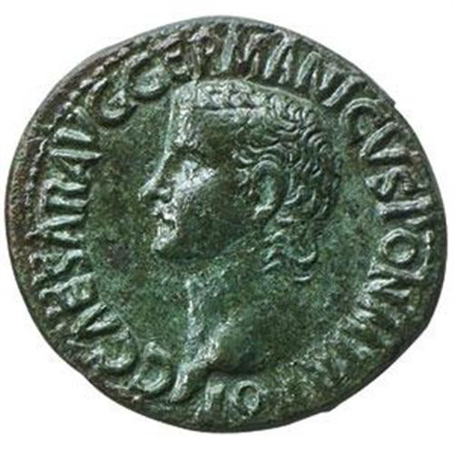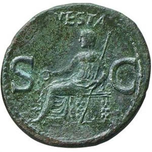 Impero Romano. Caligola (37-41). Asse. D/ Testa nuda a sinistra. R/ VESTA SC. Vesta seduta a sinistra con patera e scettro. RIC 38. gr. 10.84 AE. SPL. Patina verde smeraldo.