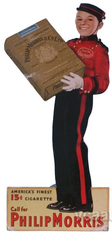 "Call For Philip Morris" Countertop Die-Cut Easel Back Cardboard Advertisement "America's Finest 15 Cent Cigarette" - 15" tall