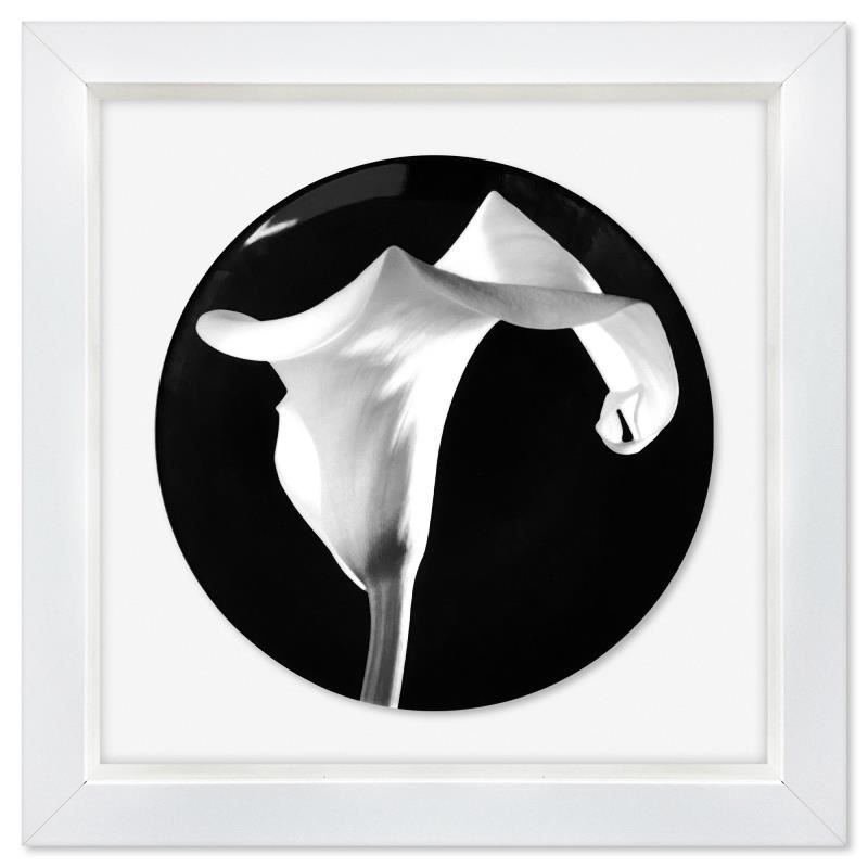 "Calla Lily (1988)" is a Limoges porcelain plate bearing the plate signature inverso of Robert Mapplethorpe (1946-1989). This plate is custom framed and floated on linen. Measures approx. 13.5" x 13.5" (frame), 8.5" (plate diameter).