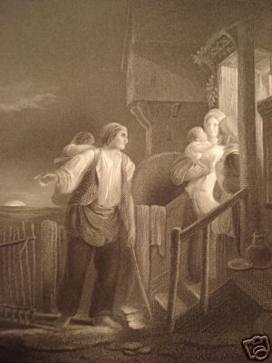 Callcott - "The Way-Worn Traveler" Antique Steel Engraving On Heavy Paper - Created In The 180os - A. Heath Engraver - Image 6x5 - Professionally Framed & Matted - Excellent Condition