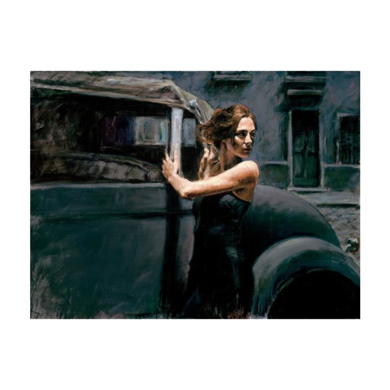 "Calles De San Telmo" is a hand embellished limited edition giclee on stretched canvas by Fabian Perez. The piece is numbered and hand signed by the artist and comes with a Certificate of Authenticity. Measures approx. 12" x 16" (image). Please allow 5 additional business for items that include canvas stretch or framing.