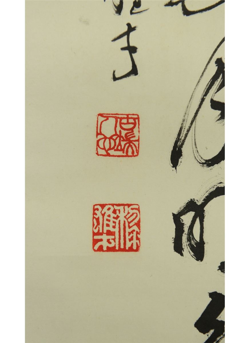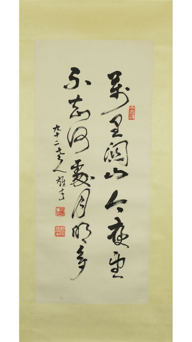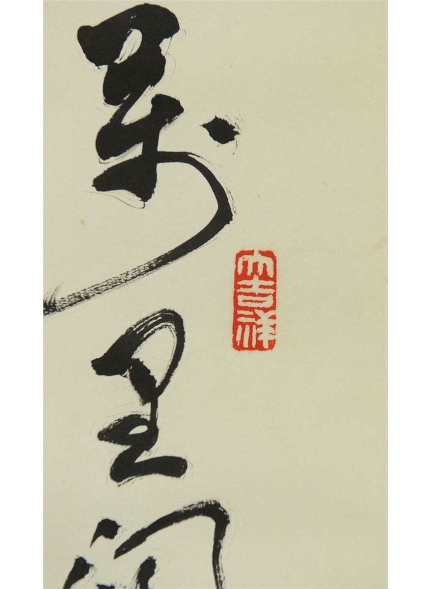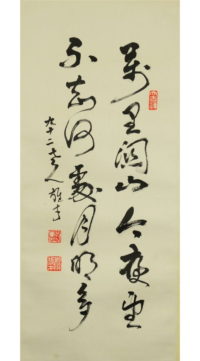Chinese calligraphy, Chinese ink on paper. Signed by Li Xiong Cai with three red seals. H: 73 cm, W: 32 cm. Provenance: T. Ng Collection, Toronto.