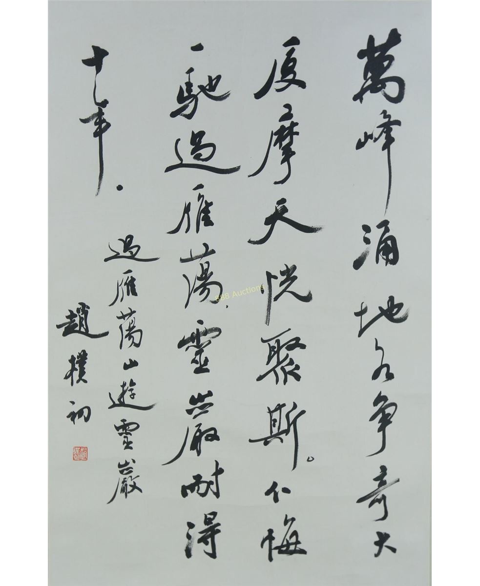 Auction is in US Dollars. All items are available for examination and inspection prior to sale. Prospective bidders are encouraged to examine all items in which they have an interest. All bidders are to carry out their due diligence of all items prior to the sale and not after the sale. 888 Auctions endeavors to accurately describe the items being sold, but all property offered for sale is strictly as is, where is, and with all faults. ALL SALES ARE FINAL WITH NO REFUND, NO EXCHANGE, and NO CREDIT. It is the bidder's responsibility to determine the exact condition/authenticity of each item. No statement in this catalogue or by representatives of 888 Auctions shall be considered as a warranty or assumption of liability. Written and oral descriptions given by 888 Auctions staff members are given as a courtesy to a client, are only an opinion, and should not be considered as a guarantee of age, composition, or authenticity. Regarding works of Art, 888 Auctions does not make any express or implied warranty as to the authenticity, history or artist. No statement in this catalog or elsewhere, orally or in writing, shall be construed as an express or implied warranty, representation or assumption of liability as to authenticity. Any such warranty is waived. The absence of a condition statement does not imply that the lot is in perfect condition or completely free from wear and tear or imperfections. Unless noted all items have some amount of acceptable wear, scratches, nicks, missing stitches, etc. for their age. Measurements on paintings and pictures are image size. Estimates are of market value and are designed to help buyers gauge what sort of sum might be involved for the purchase of a particular lot. The lower estimate may represent the reserve price and certainly will not be below it. Estimates do not include the Buyer's Premium. Estimates are prepared some time before the sale and may be altered by announcement before the sale. They are in no sense definitive. By bidding, you signify that you have either closely examined the items, have chosen not to examine them, or have hired an independent agent to examine the item(s) for you.