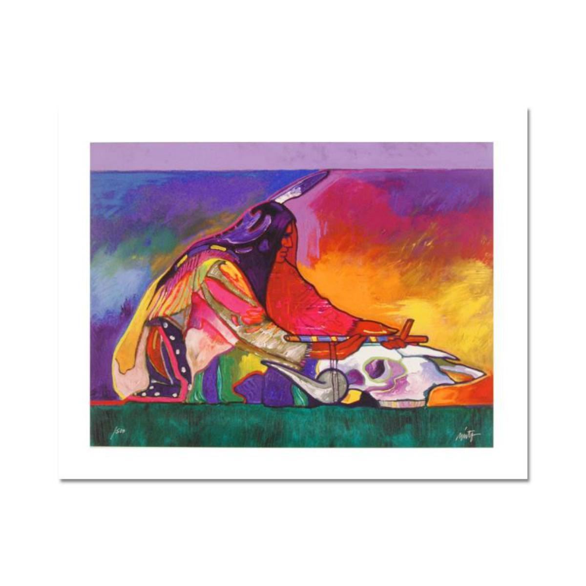 Brighten your home or office with the vivid work of John Nieto! "Calling on the Power of the Buffalo" is a limited edition giclee on canvas that is numbered 1/500. It is hand signed by Nieto and come with a Certificate of Authenticity. Measures Approx: 24"x 18" (image). Reference #: 213073