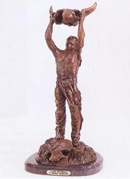 Calling the Buffalo (medium) Bronze Sculpture by Frederic Remington. 17"H x 8"L x 8"W