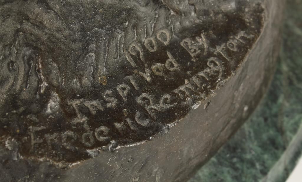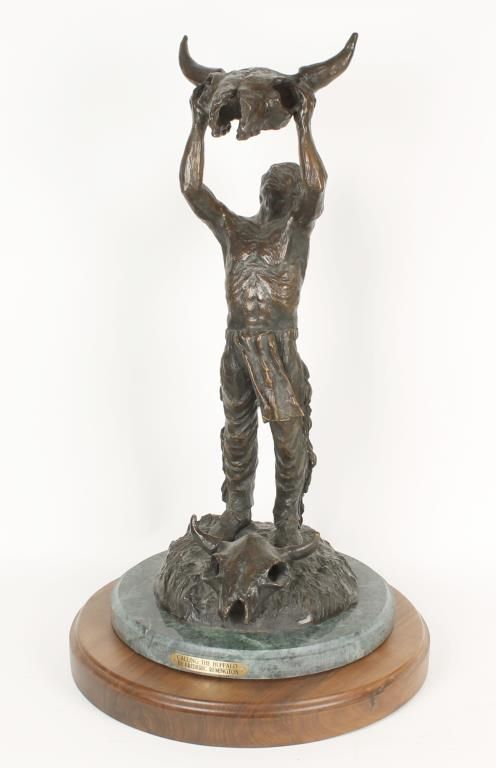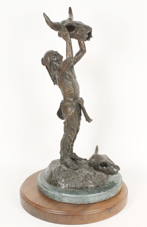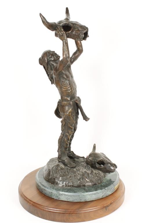 A Fine Art Bronze by noted artist Frederic Remington entitled "Calling the Buffalo". On marble base, restrike. 27"x16".
