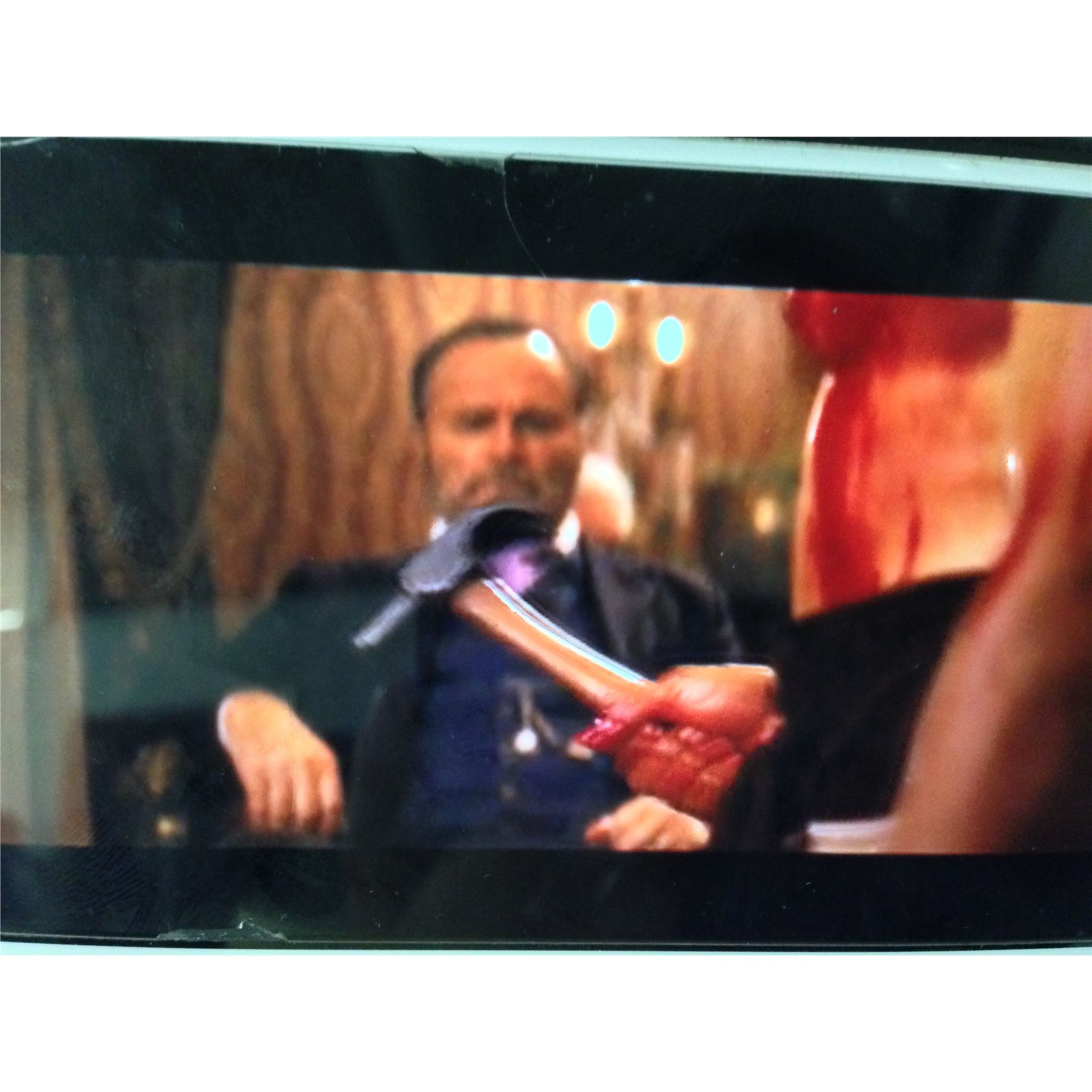 Screen used, replica hammer for Julius Caesar room, made of wood and metal. Used in the Big Fred slave fight scene when Calvin Candie (Leonardo DiCaprio) throws it at Big Fred to finish the job at the Candie plantation.(17x6)