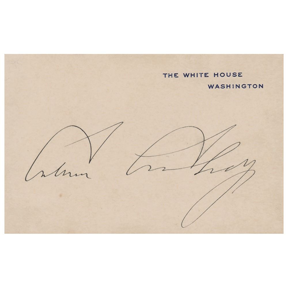 Official White House card, 4.25 x 2.75, signed neatly in ink by President Calvin Coolidge. In very fine condition.