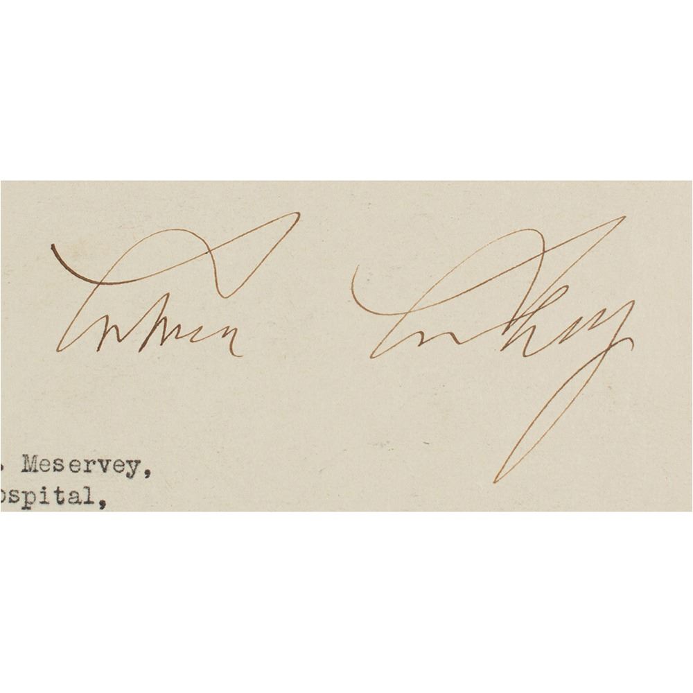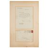 TLS as president, one page, 6.75 x 8.5, White House letterhead, February 28, 1927. Letter to S. T. Meservey at the Masonic Hospital in Chicago, in full: "It is with real regret that I have heard of your illness and I take this opportunity of expressing to you my sincere sympathy. I hope that your recovery will be speedy and complete and that you will suffer no ill effects." Matted with the original White House mailing envelope to an overall size of 11 x 17.5. In fine condition, with some light soiling to the side edges.